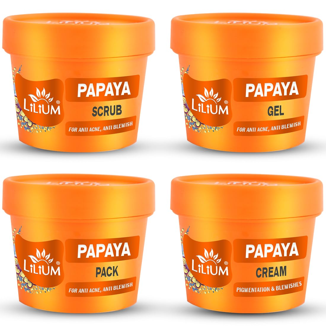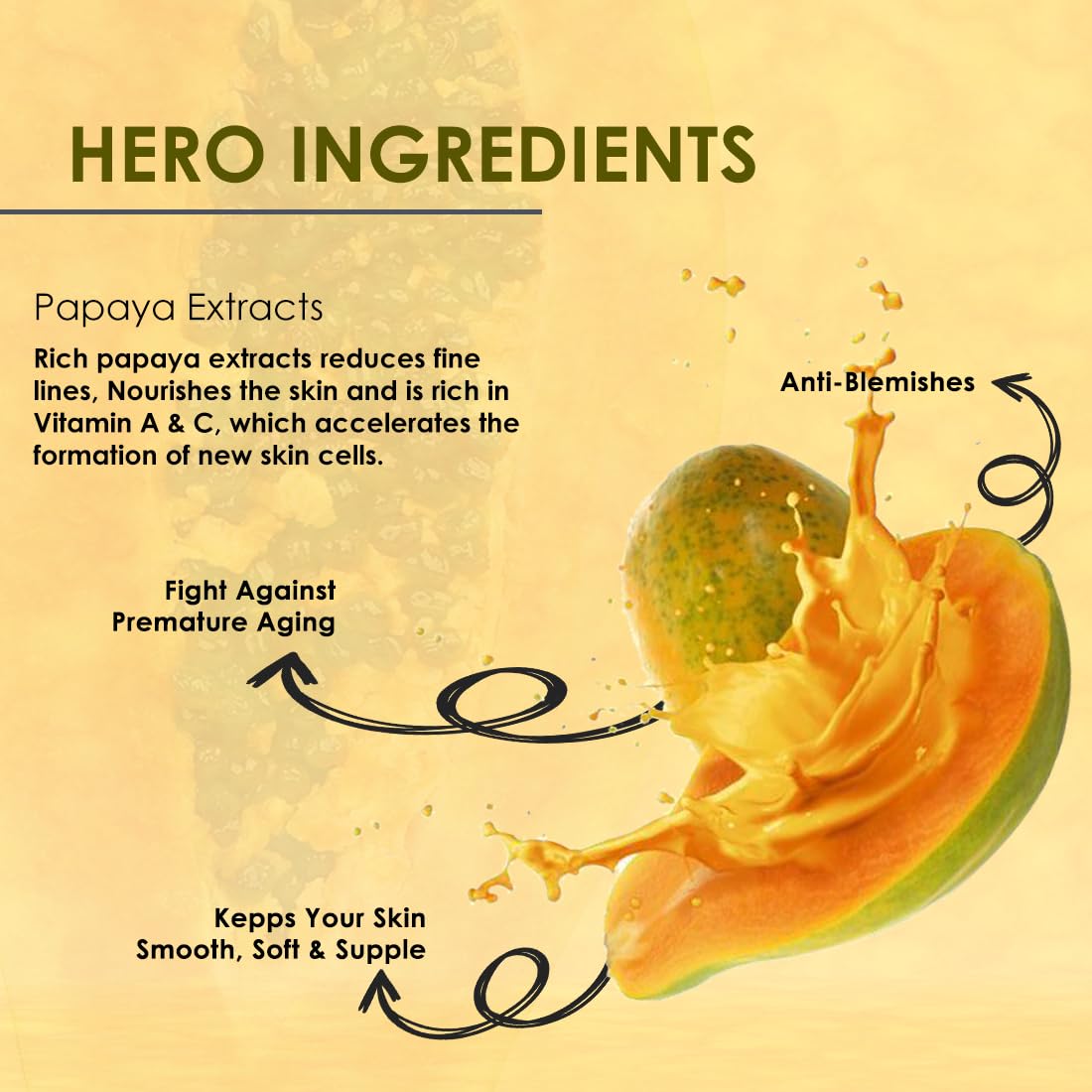 Unveil Your Skin's Brilliance: Our Papaya Facial Kit Harnesses the Goodness of Natural Ingredients for a Rejuvenated Glow Our Papaya Facial Kit is meticulously crafted with a blend of nourishing natural ingredients including: [1] Papaya Extracts: Rich in enzymes like papain papaya extracts gently exfoliate helping to remove dead skin cells and promote a smoother complexion. [2] Honey: A natural humectant honey locks in moisture leaving your skin hydrated and supple. [3] Aloe Vera: Known for its soothing properties aloe vera helps calm irritated skin and provides a refreshing sensation. [4] Vitamins and Antioxidants: Essential vitamins and antioxidants from natural sources contribute to healthier more vibrant skin. [5] Jojoba Oil: Lightweight and non-greasy jojoba oil helps balance skin's natural oils and provides nourishment. [6] Turmeric: A powerful anti-inflammatory ingredient turmeric promotes a clear and even skin tone. [7] Botanical Extracts: Extracts from plants like green tea or chamomile offer additional benefits helping to revitalize your skin. Natural Moisturizers: Ingredients like shea butter or coconut oil provide deep hydration leaving your skin feeling soft and smooth. Experience the transformative effects of these natural ingredients in our Papaya Facial Kit. Designed to rejuvenate and enhance your skin's natural beauty our kit offers a holistic approach to skincare that you'll love. Embrace the power of nature for a radiant and revitalized glow.