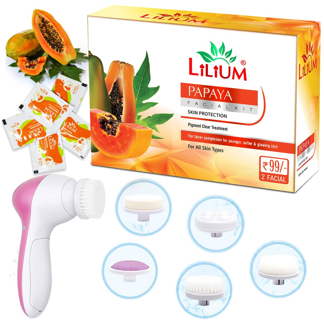 Lilium Papaya Facial Kit 60g with Multifunction 5in1 Massager