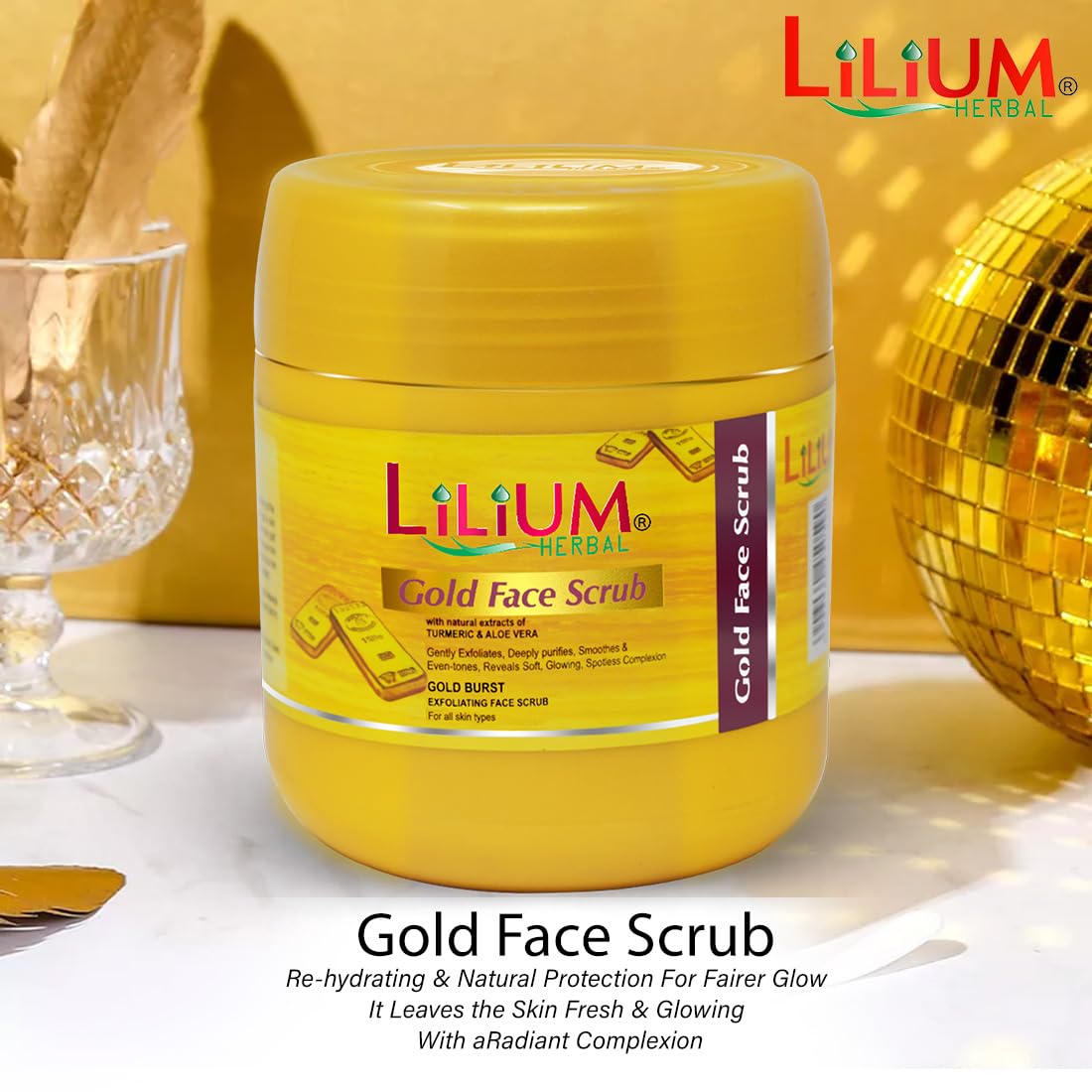 Face Scrub: Gold facial scrub is mild and pH-balanced to gently deep cleanse your pores of impurities while keeping your skin moisturized. It contains Nano-Gold 24k Technology to keep skin supple and reduce the appearance of wrinkles and fine lines and Pearl Protein helps even out your skin tone. For best results combine with other products from Lilium Gold Range.Massage Cream: 24 Caret Glow Gold massage cream maintain the fairness glow and shining of the skin it gives a natural lustre and youthful radiance to the skin use of gold in skin care dates back to ancient times. Ancient Ayurveda scriptures claims that gold Imparts radiance to the skin even has anti-aging powers. It will help your skin similar to that of gold. The skin is also revitalized by regular use of the product.Face Gel: Lilium Gold Gel know for skin lightening properties saffron & mulberry is used as natural fairness enhancing ingredient since ages. It’s an anti-aging gel which helps reduce wrinkle & fine lines.Face Pack: Perfect blend of gold which is suitable for all types of skin which removed the impurities of skin which removed the impurities of skin and clean the clogged pores and nourish tightening and revitalizing the facial tissue and make flawless fairer skin.