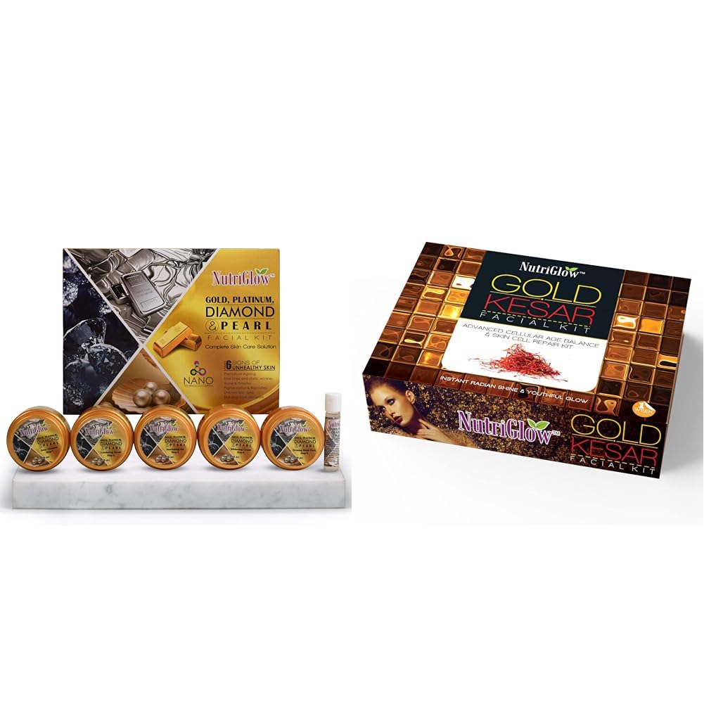 NutriGlowPlatinum Diamond Gold and Pearl Facial kit 6-Pieces Skin Care Kit Gold Kesar Facial Kit for Women| 6-Piece Skin Care/Skin Cleanup Set | Targets Signs of Aging | 250g + 10ml