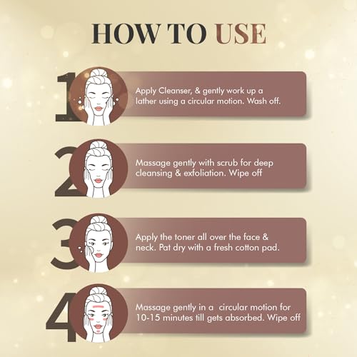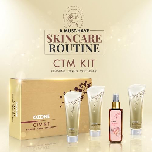 CTM KIT (Cleansing-Toning-Moisturizing)Ozone Classic Cleanser - Contains anti-inflammatory Aloe Vera skin-lightening Lemon Extracts and anti-microbial neem that unclogs pores removes sun tan and gives a bright and smooth complexion.Ozone Walnut Scrub  Exfoliates to remove dead skin cells and provide a firmyouthful and radiant complexion. Contains Walnut Shell powder Aloe VeraTurmeric and Lemon Extracts. Ozone Classic Rose Toner  Enriched with Rose Extracts essential vitaminsmicro nutrients and antioxidants the toner tightens pores while refreshing and brightening skin complexion. Ozone All Purpose Almond Massage Cream  A nourishing Facial massage cream that stimulates collagen production for faster skin cell renewal. Enriched with Aloe Vera extracts Almond Oil and Wheat Germ oil.  KEY BENEFITS/ VISIBLE RESULTS: Skin texture is drastically smoothed and improved.  The emergence of new acne and breakouts is curbed.  Skin is well moisturized without feeling oily greasy or heavy. Elasticity and bounce of the skin are enhanced.