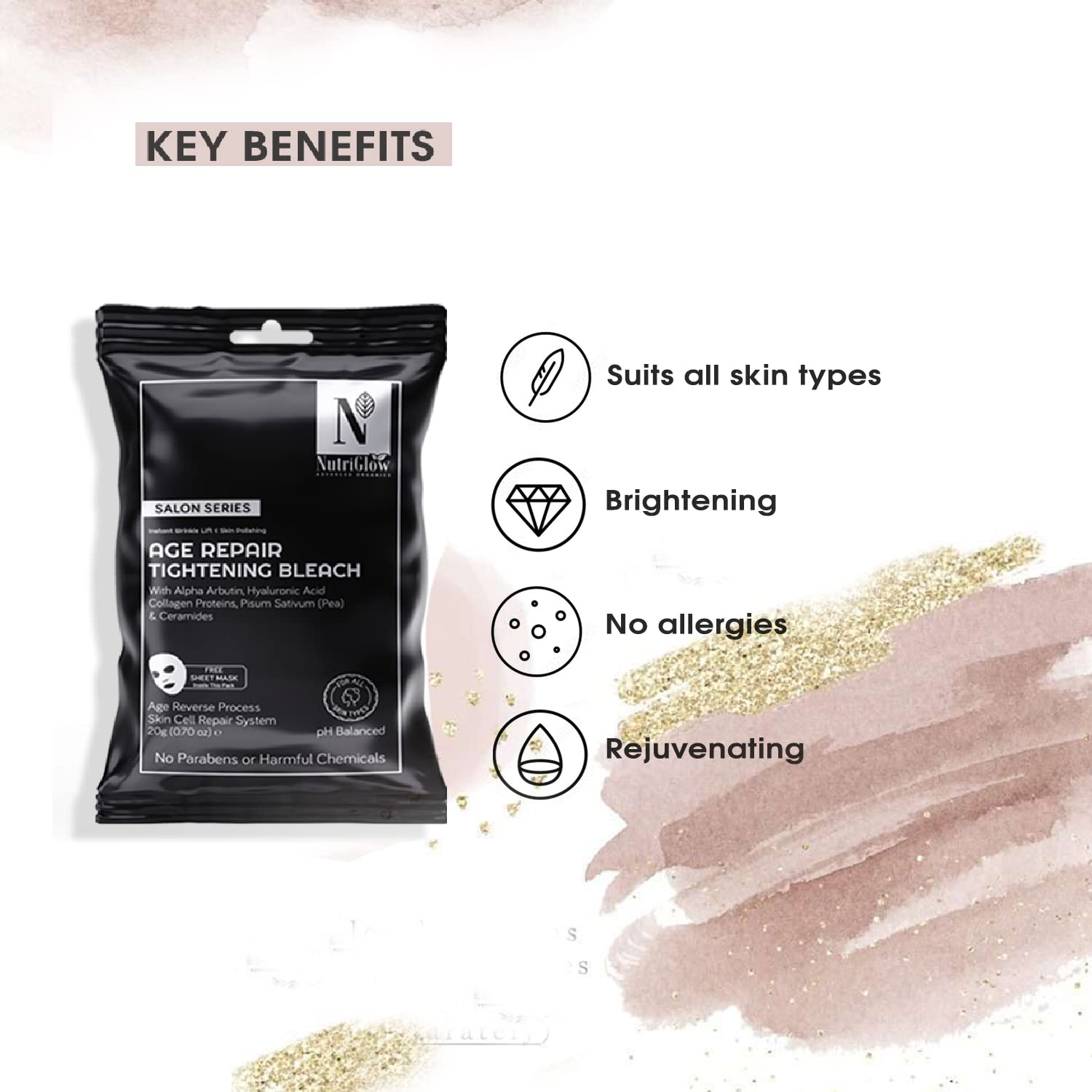 HomeBeautyFace CareMasksFace BleachNutriGlow Advanced Organics Age Repair Tightening Bleach for Age Reverse & Lightning Skin (6 in 1) - 20g All Skin Type