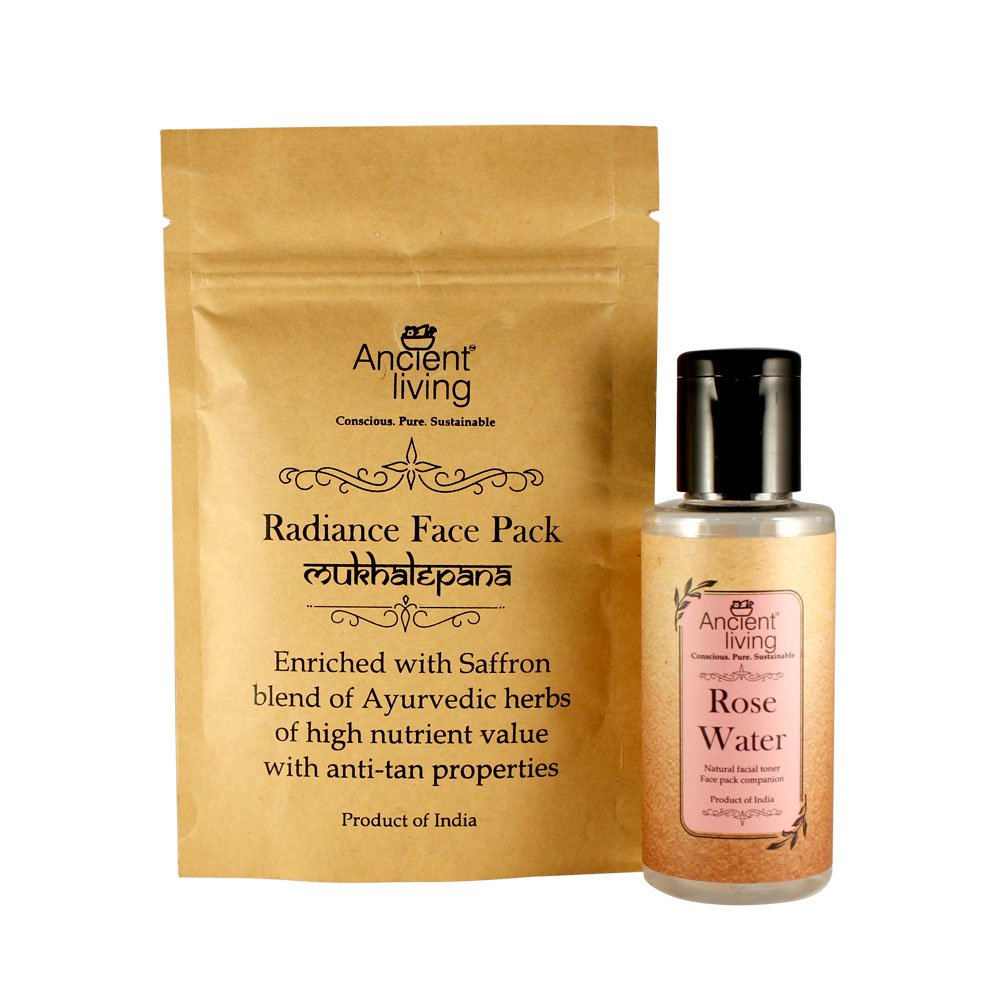 Ayurveda the plant-based healing system of Vedic times suggests various herbs to maintain beautiful and radiant skin. Based on this healing system Ancient Living has picked out the best herbs to support your skincare regime and to deliver the much-needed nourishment to maintain skin luster and smoothness. Ancient Living Radiance Mukhalepana face pack is enriched with Saffron and a blend of 11 Ayurvedic herbs of high nutrient value & Anti Tan properties. These organic herbs have been carefully picked and processed to ensure you get full value. Saffron is a rich source of vitamin C and A enhances the complexion while Manjistha purifies it. Arjuna gets rid of allergens while Raktachandan has anti-inflammatory properties to soothe the skin. Ushira relaxes and rejuvenates. Used regularly this face mask helps you to maintain a radiant and smooth complexion. Organic Rose Water- (Antiseptic anti-depressant aphrodisiac)Precious Healing qualities of rose water are best harnessed by Ancient Living Organic Rosewater. Its exquisite fragrance is tender uplifting and soothing. A boon for both men and women. Ancient Living organic rose water is collected as a residue during the essential oil extraction of fresh roses. It is a natural hydrating facial toner with the cooling soothing & moisturizing properties of rose. Use it along with Ancient Living Face pack powder for a rejuvenating experience splash on the face as required anytime for instant skin pickup in all seasons. Can be used any number of times. It is gentle enough to be used on children.