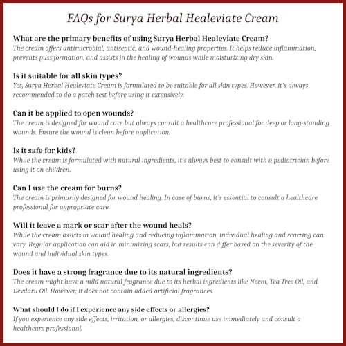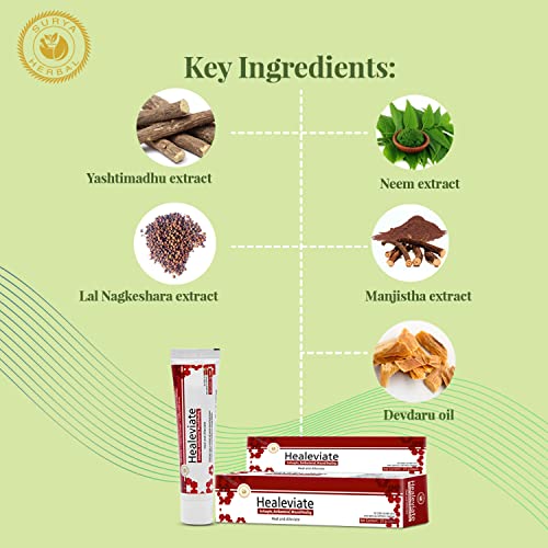 Discover the restorative blend of herbal ingredients in Surya Herbal's Healeviate Cream designed meticulously to offer optimal wound care. Infused with the goodness of nature this cream is a perfect ally for your skin's repair and rejuvenation.
