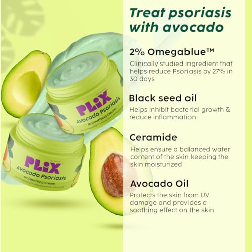Avocado Psoriasis Moisturizing Cream is a thoughtfully formulated skincare product designed to alleviate the symptoms of psoriasis and promote overall skin health. The cream features a blend of potent ingredients known for their skin-soothing and healing properties. With 2% Omega Blue a clinically studied ingredient shown to reduce psoriasis symptoms by 27% in just 30 days this cream hydrates and strengthens the skin locking in moisture and helping to restore normal skin function. Black seed oil rich in antioxidants vitamins and minerals inhibits bacterial growth and reduces inflammation. It promotes wound healing and reduces scarring making it beneficial for conditions like eczema and psoriasis. Ceramides essential lipids ensure a balanced water content in the skin keeping it well-moisturised while protecting and accelerating barrier restoration. Avocado oil known for its protective and soothing effects shields the skin from UV damage and helps relieve dryness and irritation. Together these ingredients effectively manage psoriasis symptoms by treating dryness and flakiness. Omegablue aids in skin hydration and strengthening while black seed oil soothes redness swelling and irritation. Ceramides and avocado oil work together to nourish moisturise and repair the skin ensuring it remains healthy and resilient. This cream offers a comprehensive approach to skincare for those with psoriasis supporting skin repair and providing much-needed relief from discomfort and irritation.