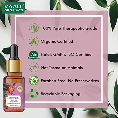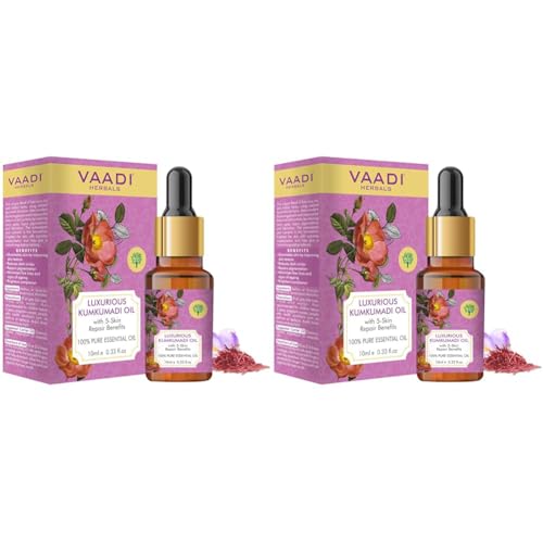 VAADI HERBALS Luxurious Kumkumadi Oil (Pure Mix Of Saffron, Sandalwood, Manjistha & Almond Oil) - Reduces Dark Circles, Pigmentation & Brightens Complexion, 10 ml (Pack of 2)