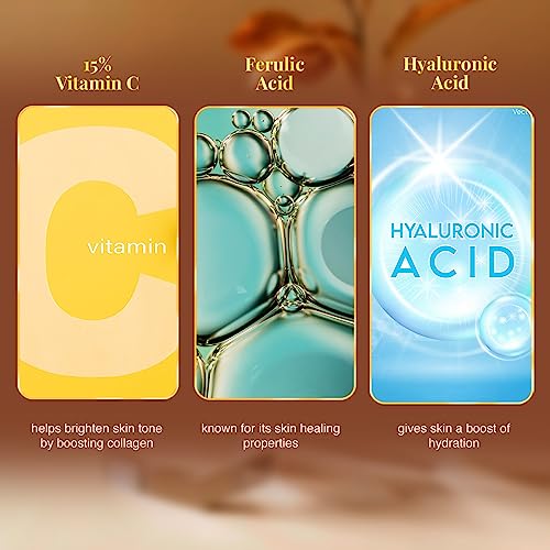 VLCC Vitamin C Serum - 30ml | Ferulic Acid - Protects Skin, Reduces Fine Lines and Wrinkles | Hyaluronic Acid - Stimulates Regeneration, and Skin Hydration with 15% Vitamin C