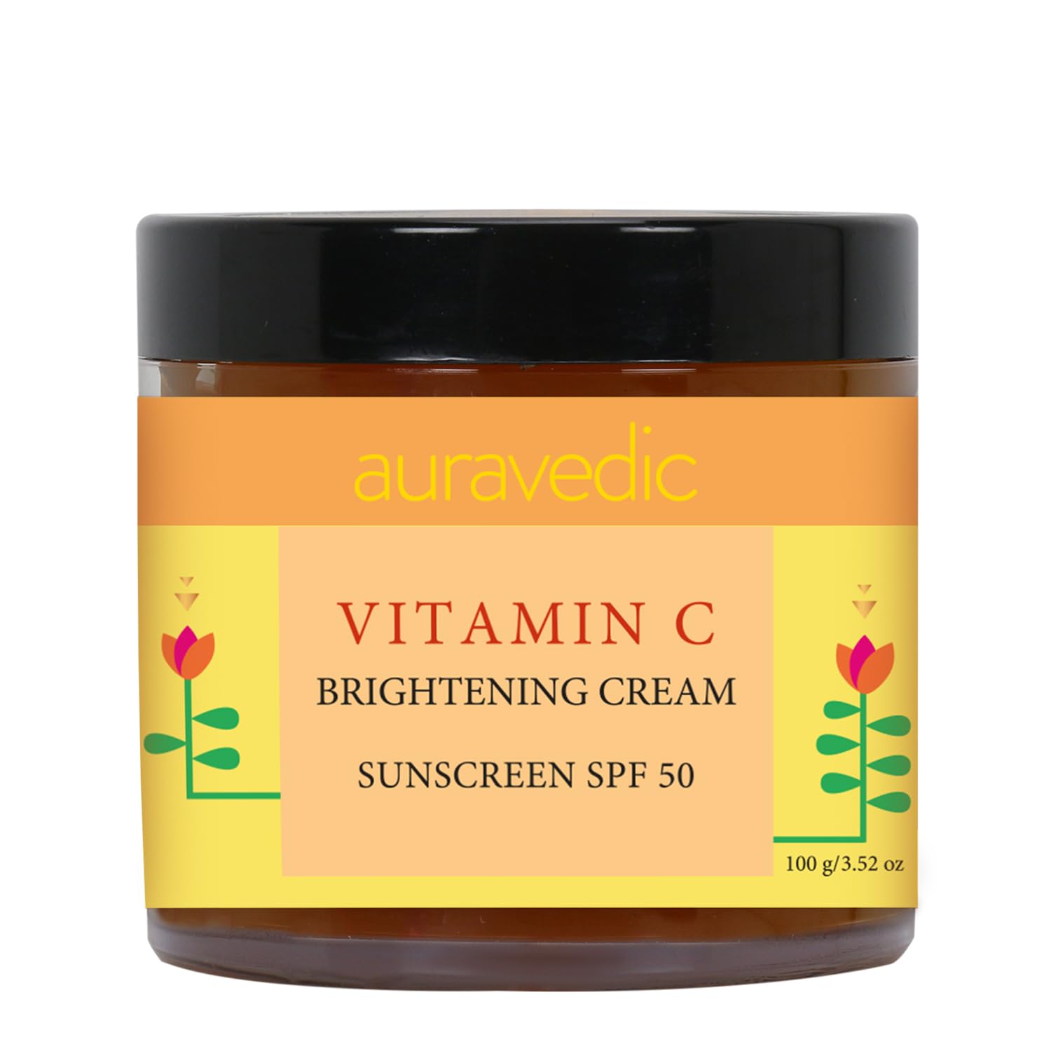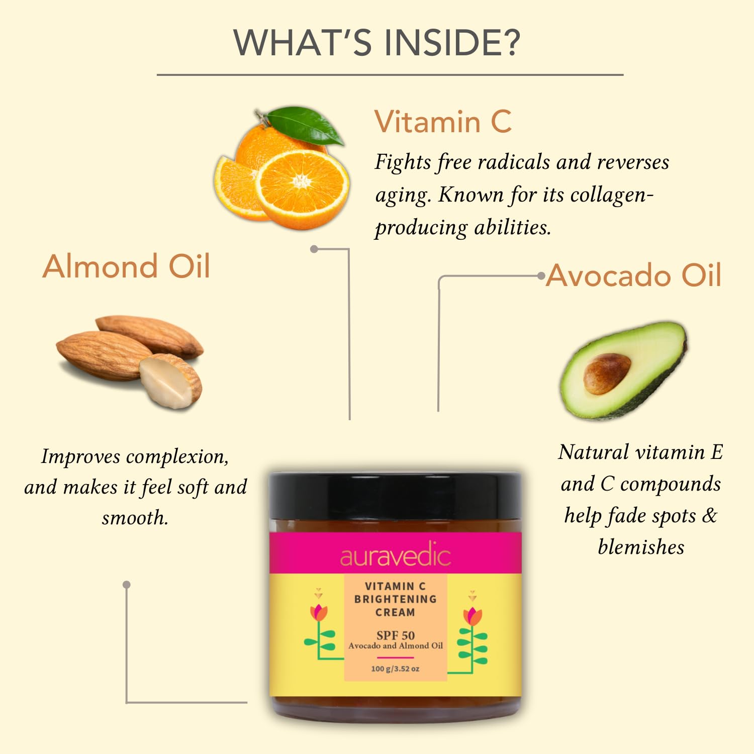 AURAVEDIC Vitamin C Face Cream For Women Men With Sunscreen Spf 50 Sun Cream Day Cream For Women Daily Use With Almond Oil Argan Oil Avocado Oil Jojoba Oil Dark Spot Removal Cream