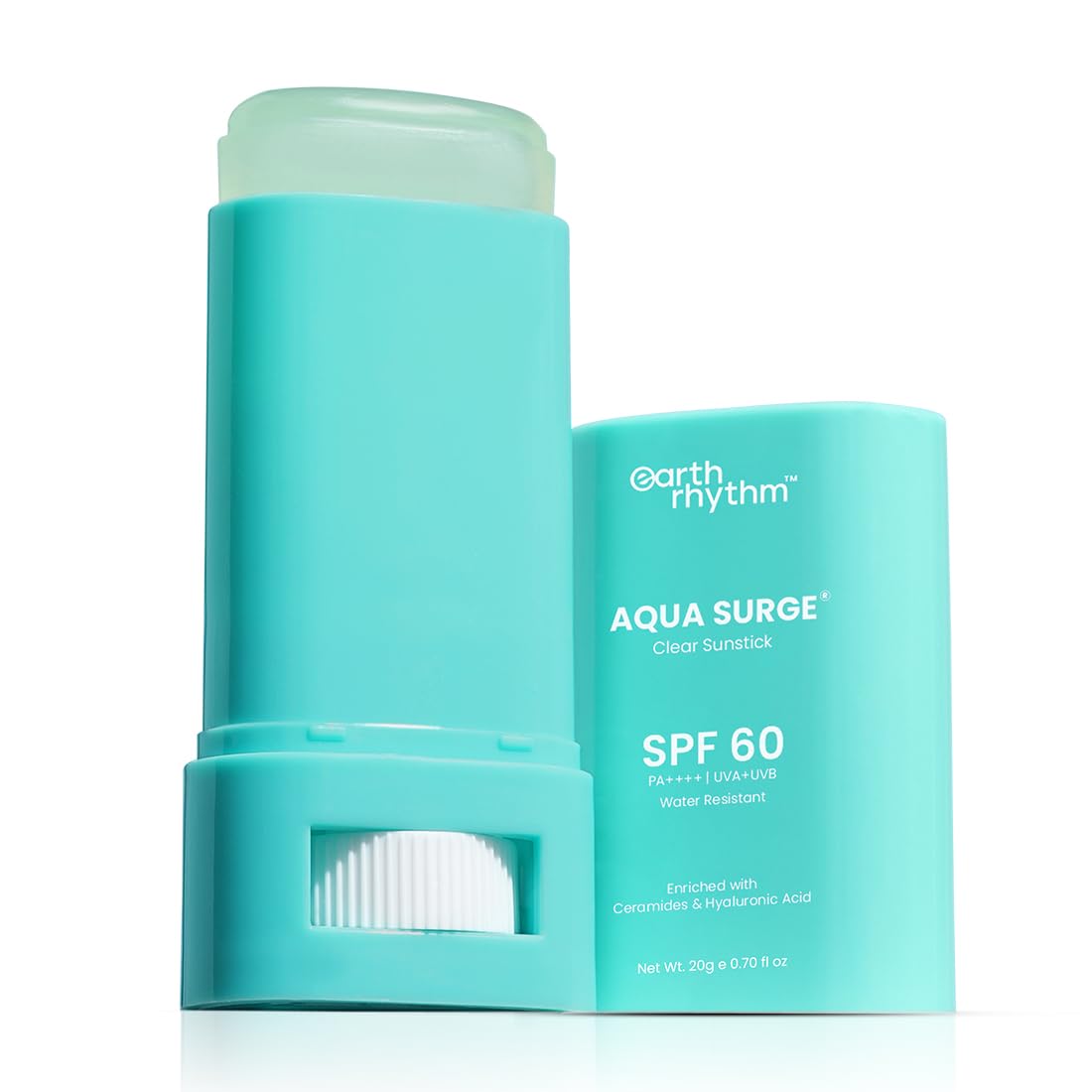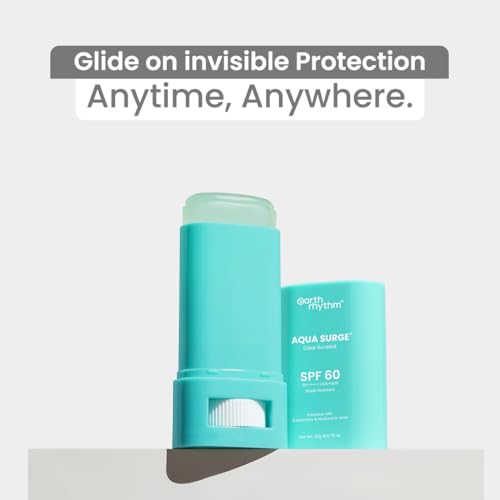 Earth Rhythm Aqua Surge Hyaluronic Sunscreen Stick SPF 60, PA++++ UVA/UVB Protection With Hyaluronic Acid & Ceramides For Hydration, Lightweight, No White Cast Sunscreen For Dry Skin - 20g