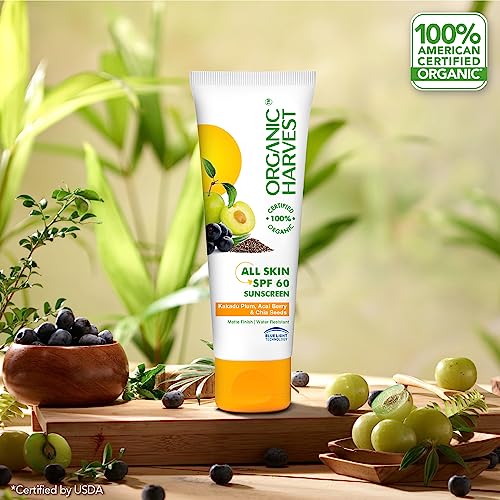 Matte Finish: Most sunscreens have a greasy finish and leave a white cast on the topical skin layer. Organic Harvest sunscreen is the best sunscreen for all skin types as it settles readily and gives a matte finish. 100% American Certified Organic Product