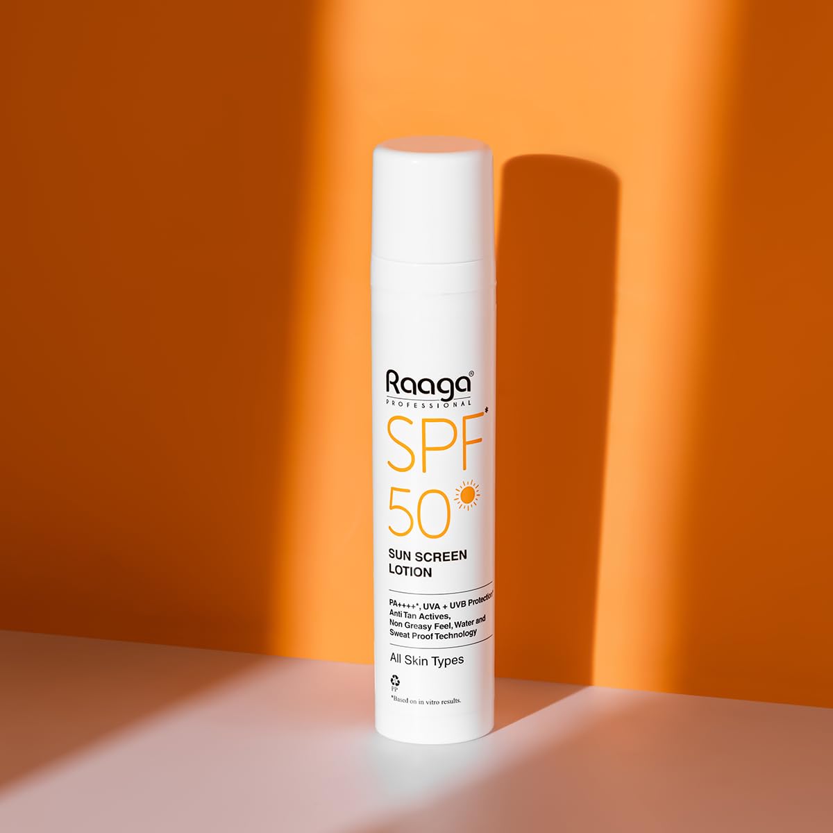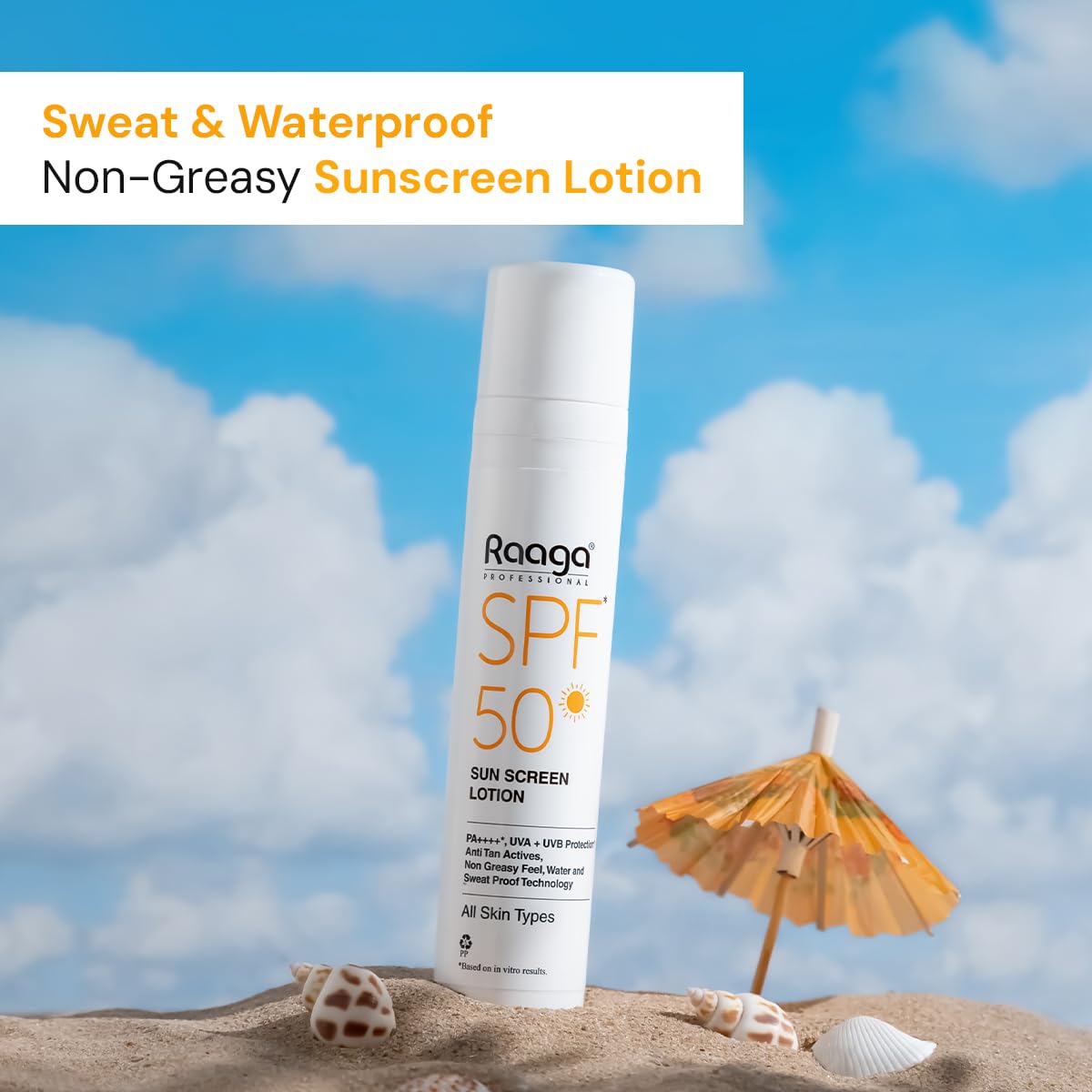 HomeBeautyFace CareSunscreenRaaga Professional SPF 50 Sunscreen Lotion | PA++++ UVA + UVB Protection Anti Tan Activities Non-Greasy Feel Water and Sweat Proof Technology (55 ml)