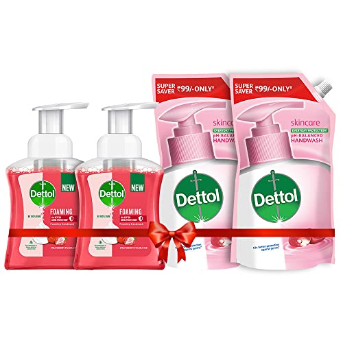 Dettol Foaming Handwash Pump - Strawberry (Pack of 2-250ml each) & Dettol Liquid Handwash Refill, (Pack of 2-750ml each)