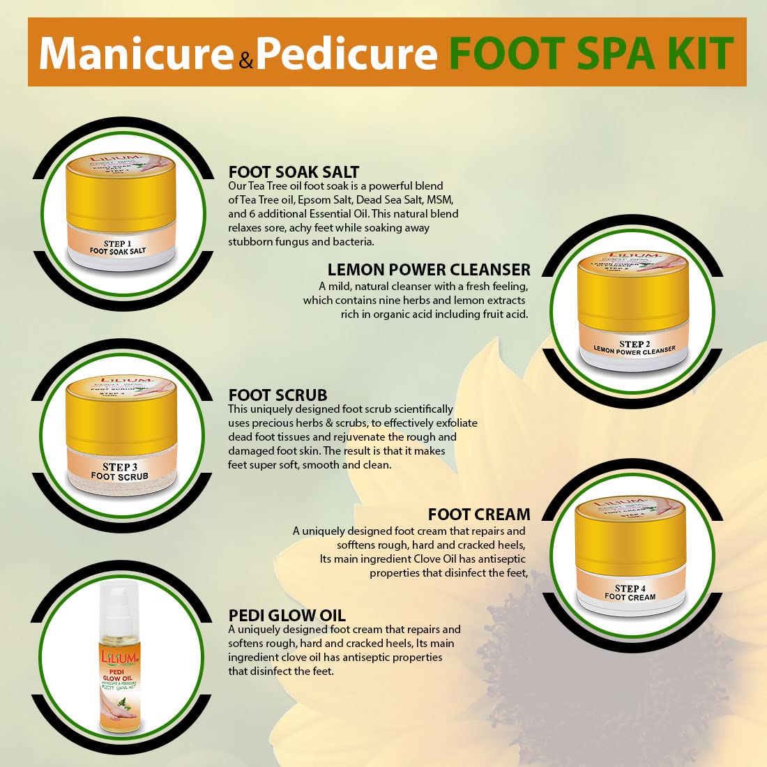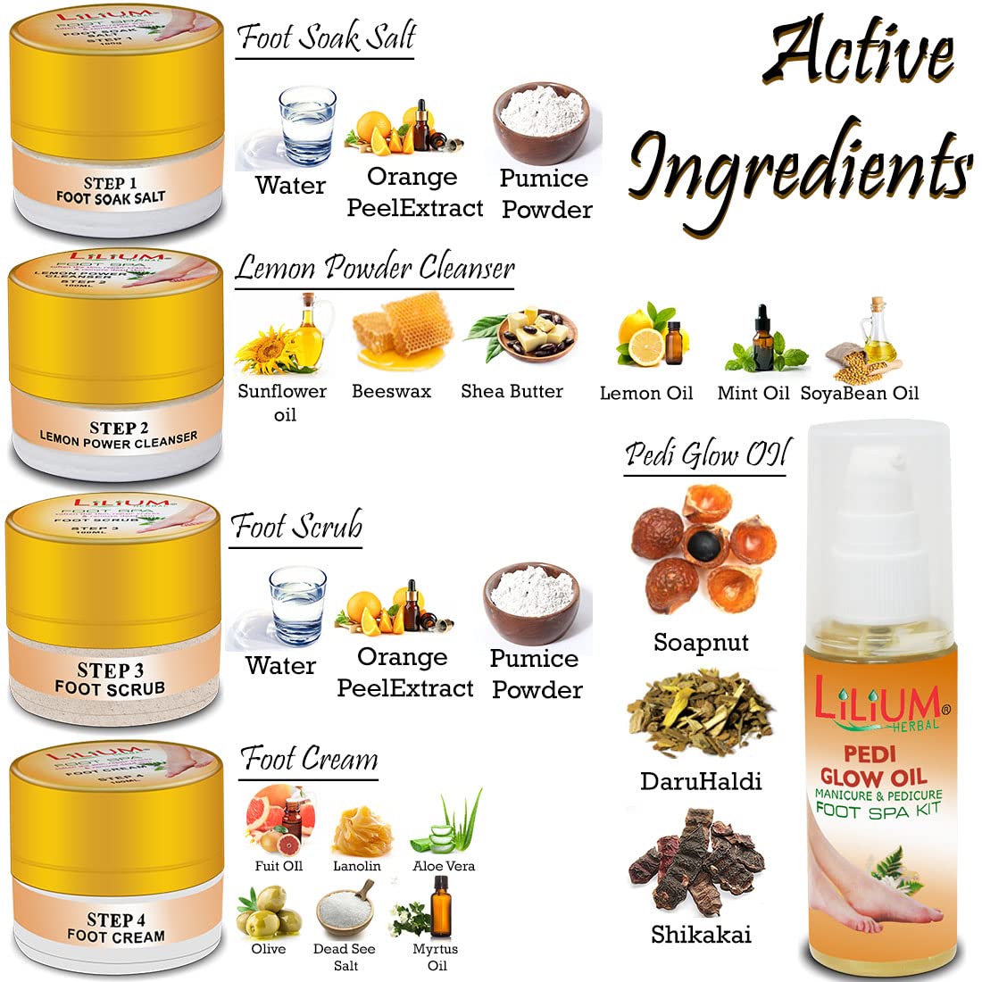 Complete 4-Step Foot Care – Foot soak lemon power cleanser foot scrub and foot cream for deep exfoliation and nourishment.