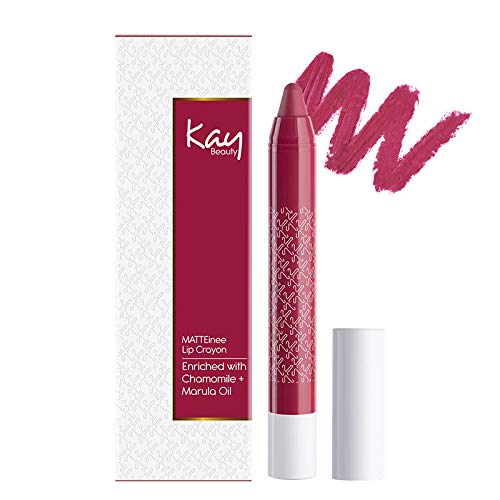 Kay Beauty Matteinee lip crayon combines unrivalled 18 hour long stay and extreme matte finish with ultra comfort. This smudge proof lip crayon delivers a high colour payoff while feeling weightless on the lips making your lips feel feathery soft and light. The overachieving lip crayon is 100% waterproof & sweatproof so your lip hue stays intact when the sun goes up. Enriched with the miraculous Marula & good for you Chamomile oil the lip crayon ensure to keep your lips well hydrated and nourished while you are looking glam. Housed in Kay’s classic monogram it comes in 24 attractive shades from barely there nudes to high drama hues specially curated for all Indian beauties.