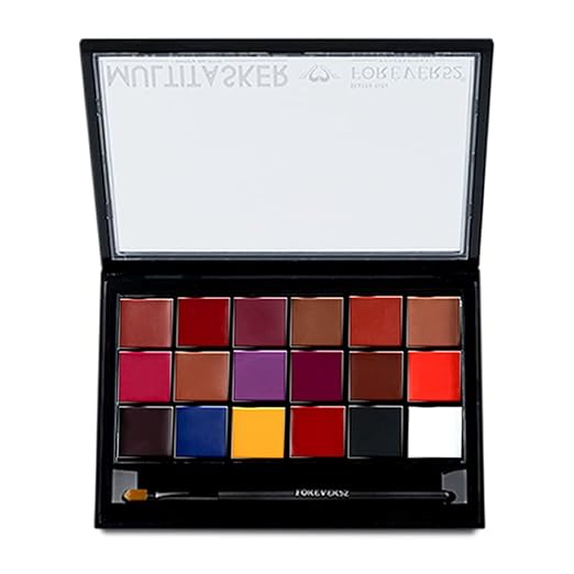 The 18 color Pro Artist Multitasker Lipstick Palette has a variety of options for you to pick from. These highly pigmented shades can not only be used as lipsticks but as eyeshadow and blush. Its long lasting formula easily glides on making application super smooth and easy. It comes with a brush which helps to mix shades easily.
