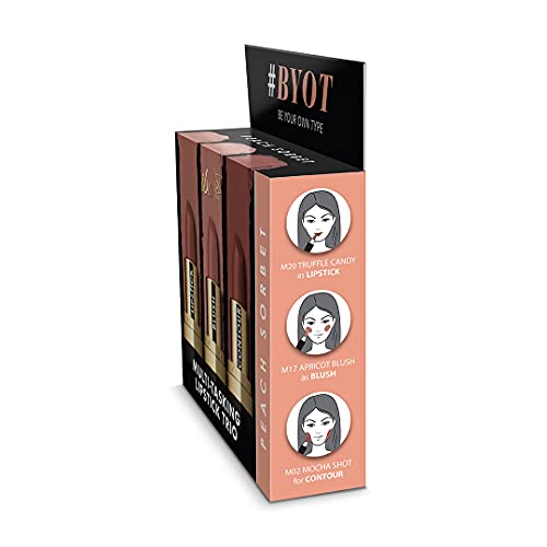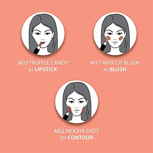 Capture the unforgtettable moment with three intense shades of Iba Matte Lipsticks: M20 Truffle Candy as LipstickM17 Apricot Blush as BlushM02 Mocha Shot for ContouringA heady mix of freshness sophistication and glam that delivers an irresistible cool and confident look!