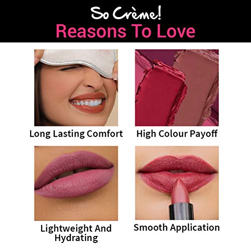 This So Creme Matte Lipstick from Nykaa is enriched with a lightweight and comfortable formula that offer long-lasting comfort and a one-stroke application. It comes with a creamy matte finish that gives your lip a high-colour payoff and long-lasting colour.