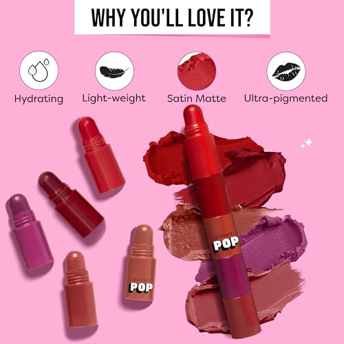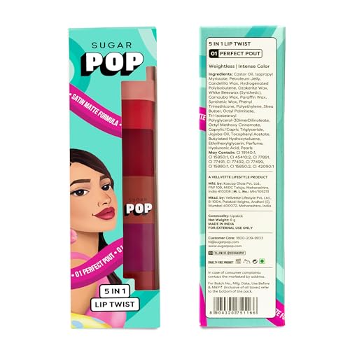 SUGAR POP 5 in 1 Lip Twist | Intense Colour Payoff | Satin Matte Finish | Ultra-pigmented | Full-coverage & Long-wear | With Castor Oil & Vitamin E | 8gm - 01 Perfect Pout