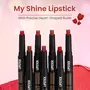 Experience a radiant shine like never before with the Swiss Beauty My Shine Lipstick. Crafted with a unique heart-shaped bullet this lipstick effortlessly glides onto your lips delivering precise and even coverage for a flawless pout. But it's not just about the aestheticsSwiss Beauty My Shine Lipstick is available in 12 shades and is packed with nourishing Vitamin E ensuring that your lips stay moisturised while you flaunt the vibrant colour. Whether you're opting for a bold red or a subtle nude each shade comes with an intense pigmentation for a long-lasting statement-making look. The shiny finish of the lipstick adds a glamorous touch to your overall look making it perfect for any occasion whether it's a casual day out or a special evening event. The heart shape isn't just for show; it ensures effortless application gliding smoothly over your lips to provide precise and even coverage. To top it all off Swiss Beauty My Shine Lipstick comes with a convenient bottom that dispenses the product making it easy to use and carry with you wherever you go.