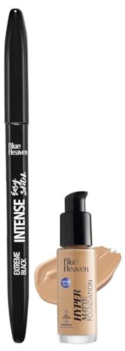 Blue Heaven Hyper Matte Foundation (302 Honey Tan Cream 30 ml)Blue Heaven Hyper Matte Liquid Foundation is the perfect base to achieve a photo-finish matte look that lasts all day long. It provides buildable coverage blurs imperfections and gives a natural finish. This lightweight formula is waterproof transfer proof and has SPF 30 PA++ which protects your skin from harmful UV rays. Available in 7 shades with 2 cool tones and 5 warm tones.Blue Heaven Intense Eyeliner Easy Sketch Black 1ml Matte FinishThis new-gen advanced eye writer pen delivers high color precision line around your eyes. Its fine felt tip applicator gives exact color which dries quickly and won't smudge or fade. Its water proof formula stays for longe