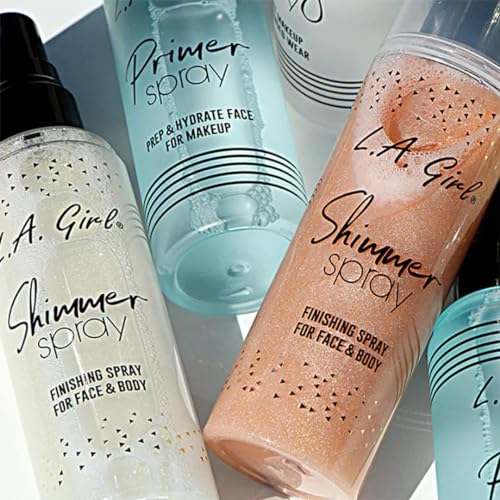 DESCRIPTION :- L.A. Girl's Rose Gold Shimmer Finishing Spray is a dual-purpose product for the face and body. Infused with pearlescent shimmer it provides a brightening and illuminating glow enhancing the skin's natural radiance. Specifically formulated for a glowing effect this spray also doubles as a setting spray for makeup ensuring it stays in place for extended periods. The 80ml size is convenient for travel and on-the-go touch-ups.L.A.Girl shimmer spray :-Lock in your look with new shimmer setting spray specially formulated to have your makeup looking fresh all day long.Get gorgeous glowing skin with two new shimmer sprays.Each spray is infused with pearlescent shimmer for the ultimate illuminating glow.Perfect for face and body.OTHER DETAILS :- BRAND :- A GIRLITEM FORM :- SprayITEM VOLUME :- 7 Fluid OuncesSCENT :- RoseSPECIAL FEATURE :- Long Lasting
