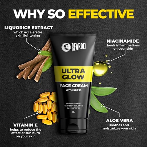 Beardo Ultraglow All in One Face Cream For Men with SPF 30, 60g | Aloe Vera With Vitamin E and Niacinamide for Skin Brightening & Dark Spots Reduction
