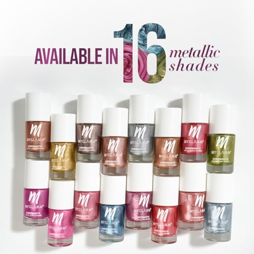 This nail polish is long-lasting and is formulated without any harsh chemicals. Its one-swipe smooth application gives you rich colour pay-off in just two coats. These chip-resistant and non-staining nail polishes add the perfect splash of color to your usual OOTDs! MyGlamm Chromantic Metallic nail polish brings you rich color pay-off in 16 colorful shades. Try this nail makeup product and give your nails a colorful makeover!