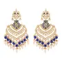 I Jewels 18K Gold Plated Intricately Designed Womens Traditional Long Earrings Enamel Glided With Kundans & Pearls (E2903)