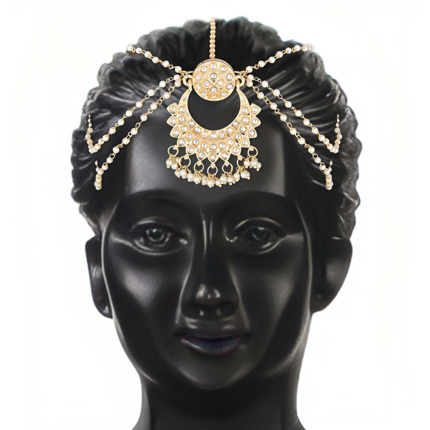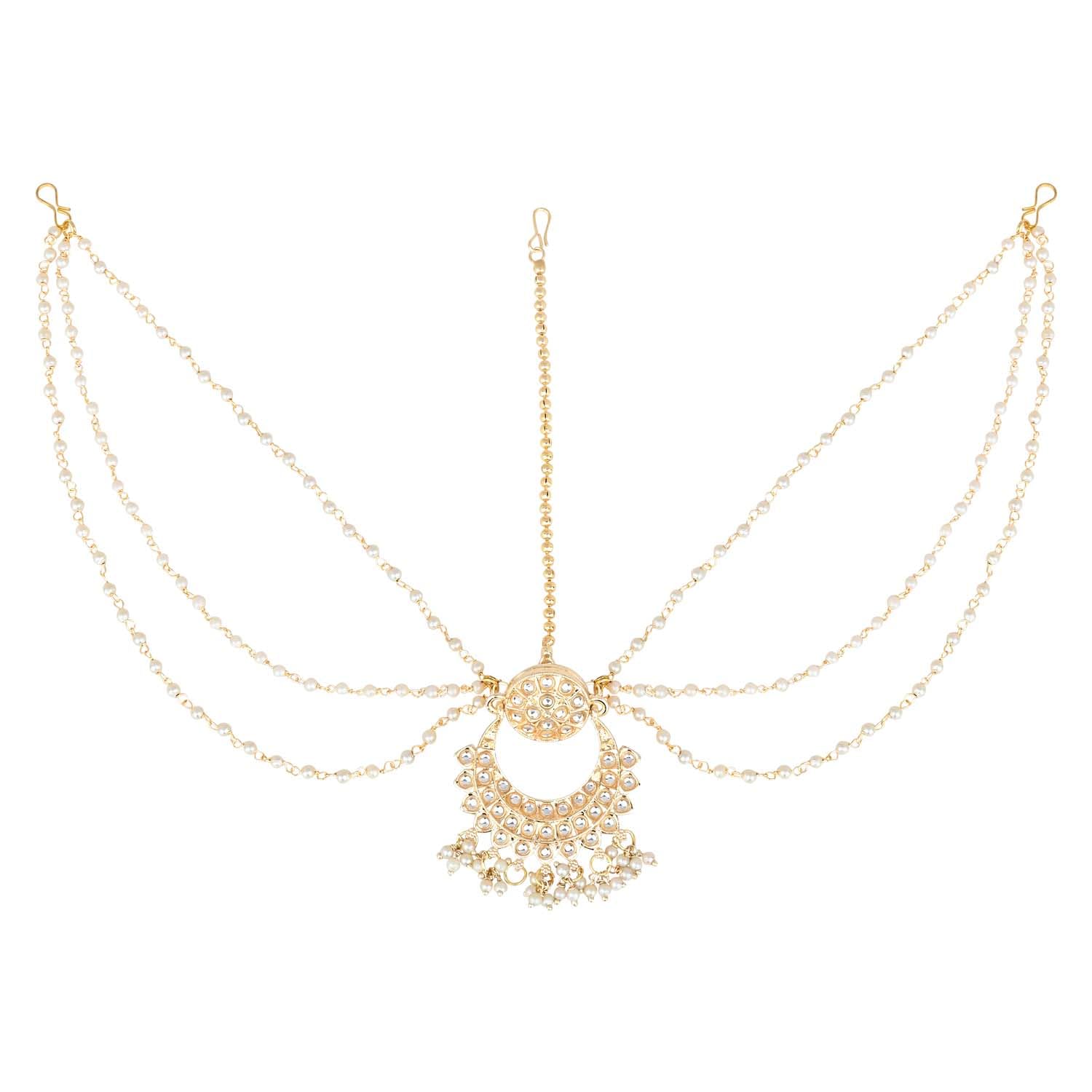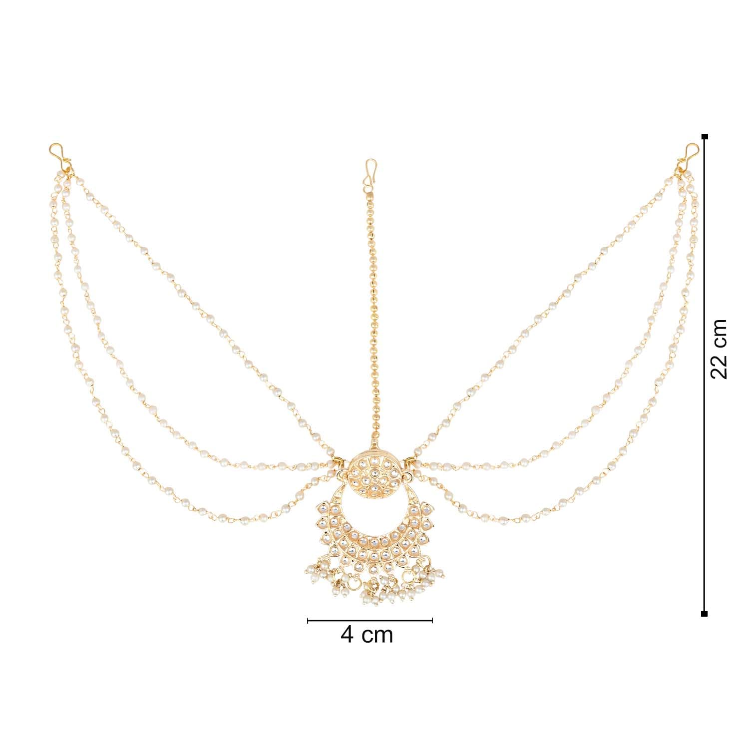 This Maathapatti is crafted in gold plated finish with stunning antique finish - these maathapatti are really special .The maathapatti feature Stone-studded with pearls. Be stylish and smart with these Golden Maathapatti. Perfectly crafted. Wear it with a suit or a saree and lehenga for an ethnic yet classy look. Ideal Valentine Birthday Anniversary gift your loved ones. Women love jewelry specially traditional jewellery adore a women. They wear it on different occasion wedding and festive time. They can also wear it on regular basics.