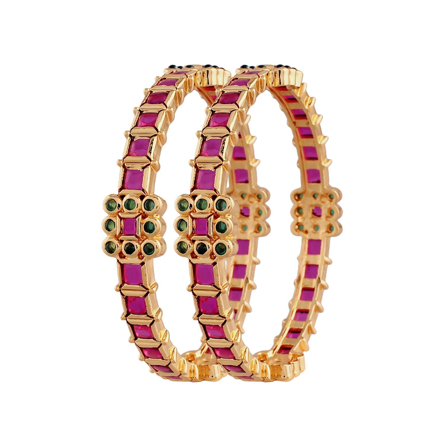 Designer and trendy gold plated bangle perfect for all occassions. It's graceful designs compliments with ethnic/western/ indowestern outfit. The Diamond looks totally like real Emerald and gives a very good lusture with shine. Bangles inner side is nicely cut and polished so you dont get any rashes cuts in hand. Available in size 2.4 2.6 2.8.