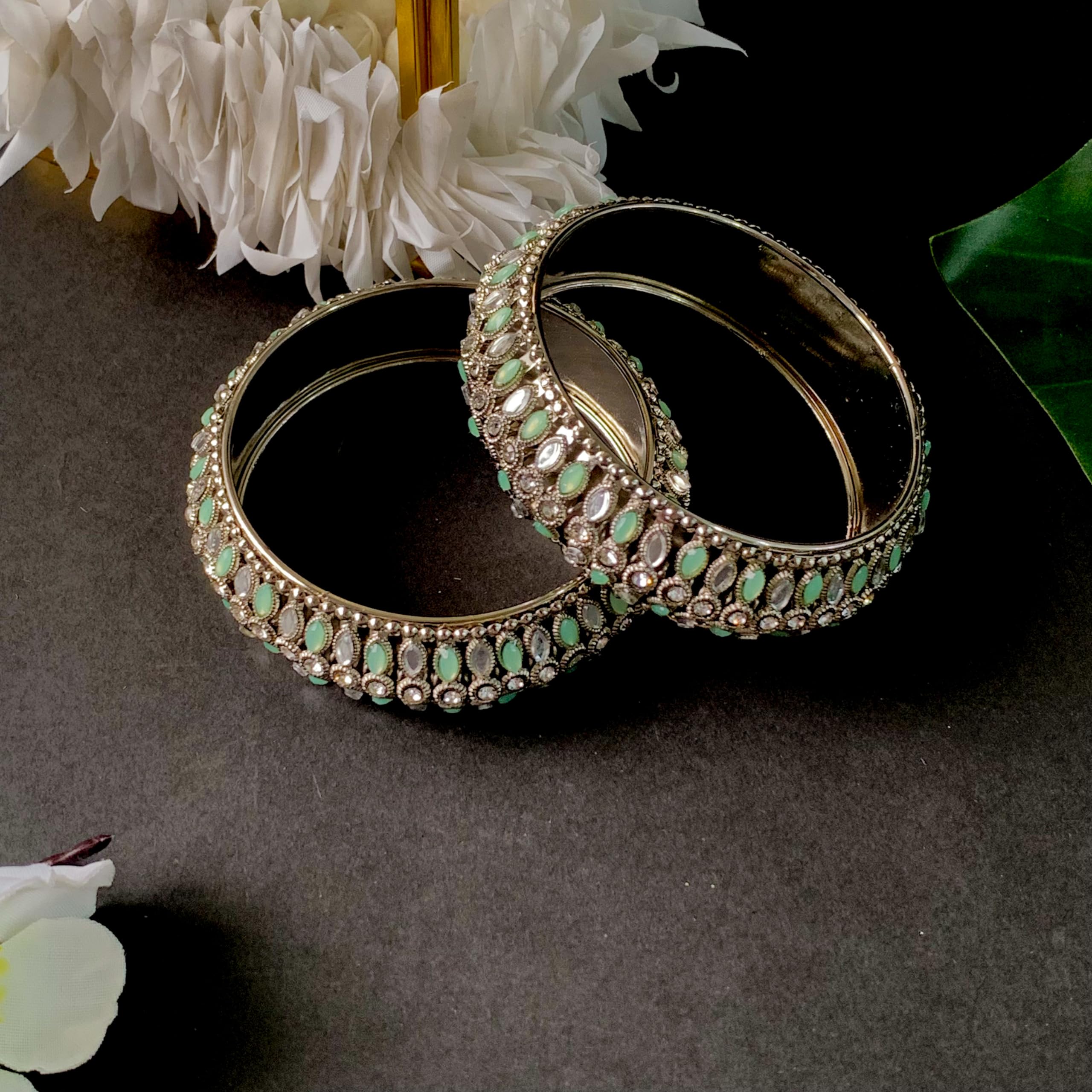 I Jewels Stylish Latest Fashion Light Weight Traditional Pearl Kundan Kada Bangles for Women (Pack of 2)