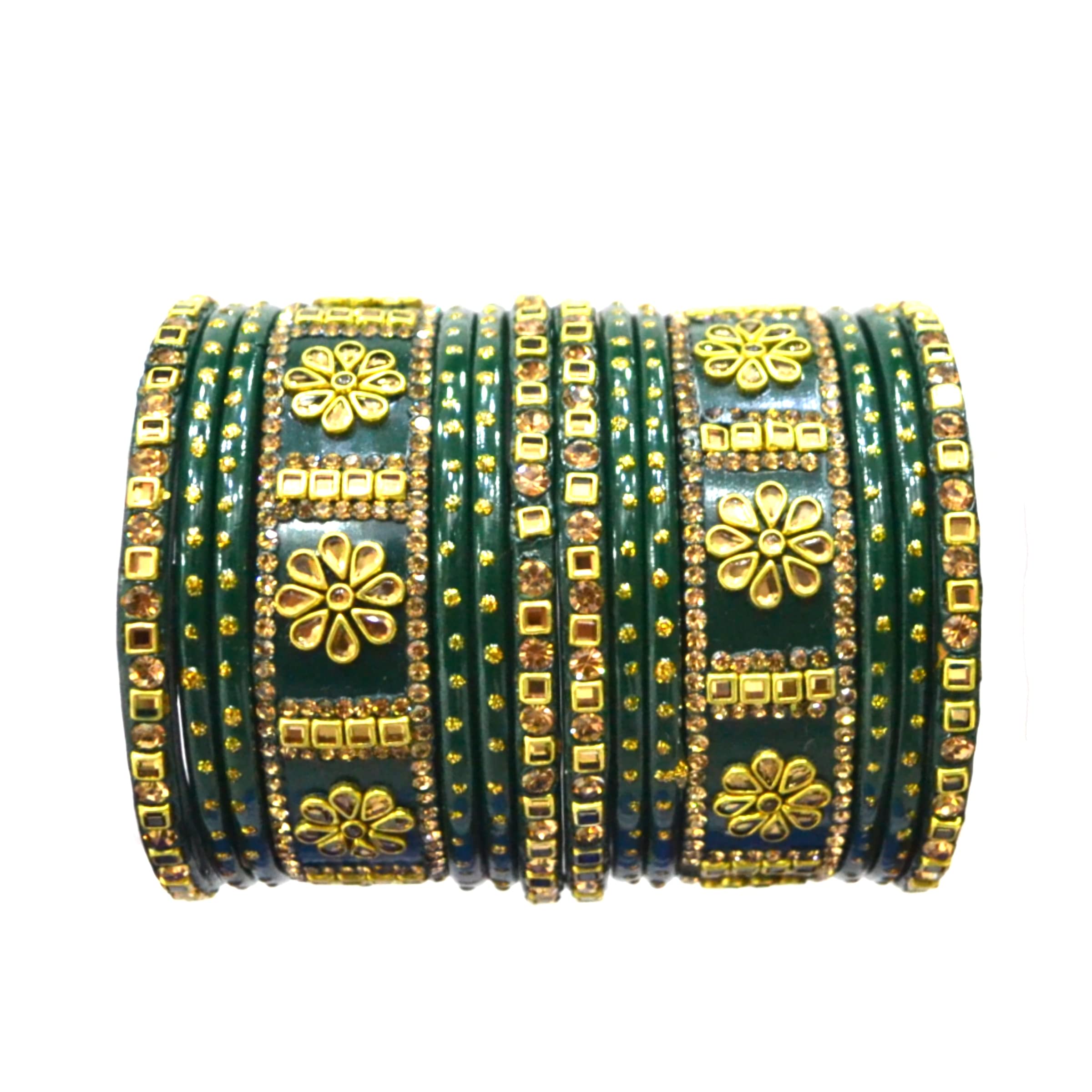 LAC BANGLES Lac Lakh Lahethi Bangles Set for women Traditional Kundan Green Chuda set