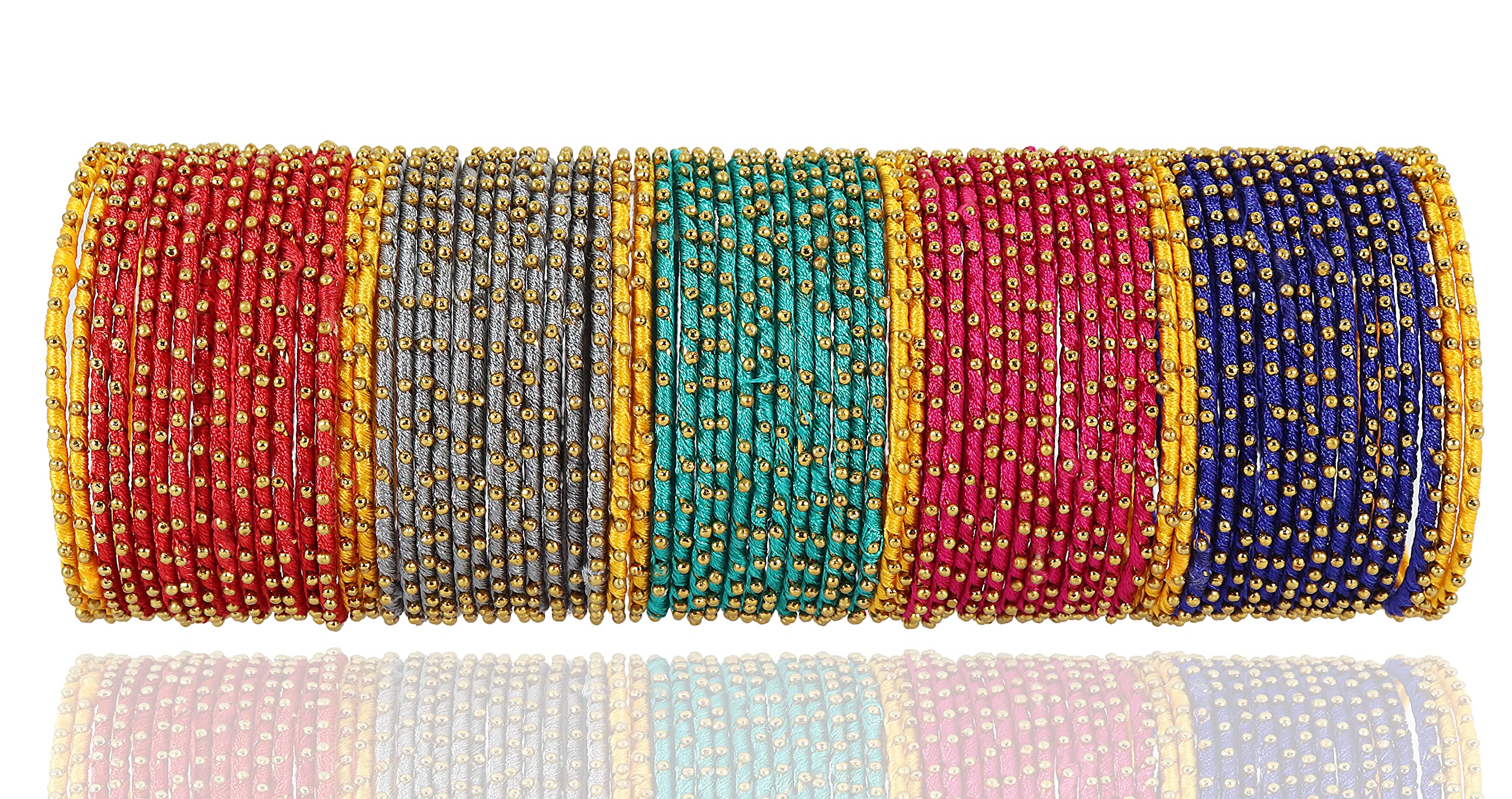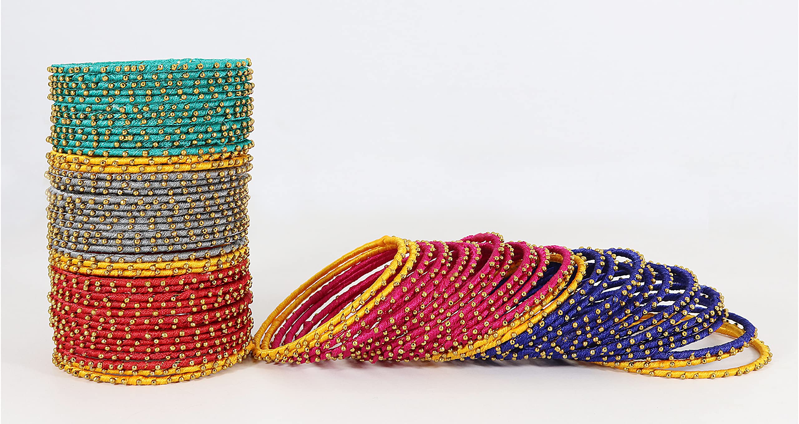 These Silk thread and Linked with Ball Stone Metal Bangle Set Can Make Your Hands Pretty and Attractive. These Bangle set are From The Latest Collection of NMII (New Make In India). It's Beautiful Glossy Finish Design Ball Stone with Silk thread worked Good Quality Metal Material Bangle Set. These NMII's Stylish Trendy Metal Bangle Set Complete Your Look On Any Occasions Like Festival Party Wedding and Engagement etc. Welcome To The NMII (New Make In India) The World of Metal Bangles Metal Bangles Chuda Set Bridal chuda set Kaleere set and Kadaa set or Other Women Jewellery accesories. Shop here from a wide range of following types of Bangles Glass Bangles Metal Bangles Silk Thread Bangles Acrylic (Plastic) Bangles Zircon Bangles Beads Worked Bangles Kundan Worked Bangles Lac Material Bangles New Electric Light Chudaa etc. From NMII On Amazon. NOTE : Use NMII Size Chart For Better Understanding About Your Bangle Size. CLEANING INSTRUCTIONS : Clean It with Very Dry Soft and Smooth Cotton Cloth. SAFETY INSTRUCTIONS : Keep the Bangles/Kadaa away from direct Water Perfume Sunlight and Other Chemical Substances and Keep the Bangle in a zip lock air tight pouch. Thanks For Choosing Our Brand NMII (New Make In India). If You Love and Like our products. So Please share your valuable feedback and customer review for our best experience and Share our product`s link to your friends family. If you are facing any kind of problem Please refer to our Product Description such as Size and Care Instructions. If your problem is not solved by Our Description So Please contact us. Contact details are given below (In Product Description Section). We have been start selling products on Amazon since 2016.