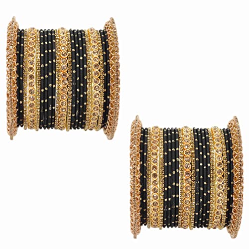 NMII Non-Precious Metal with Base Metal and studded with Zircon Gemstone or Zari Dotted Glossy Finished Traditional Chuda Bangle set for Women and Girls 2.6 Metal Zircon Gemstone