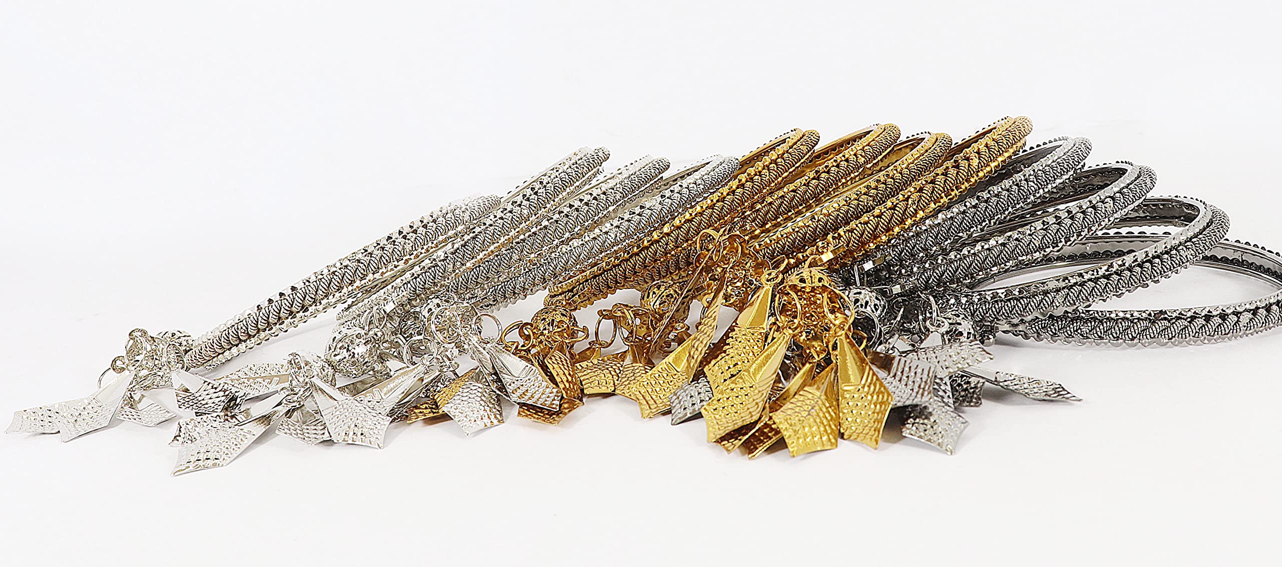 These Latkan Kada set can make your hands pretty and attractive. These Latkan Kada set are from The Latest Collection of NMII (New Make In India) . It's Beautiful Glossy Finish Designer Kada are made by good quality Metal Material. These NMII (New Make In India) Stylish Trendy Kada Set Complete Your Look On Any Occasions Like Festival Party Wedding and Engagement etc. Welcome To The NMII (New Make In India)The World of Glass Bangles Metal Bangles Acrylic Bangles Chuda Set Bridal chuda set Kaleere set and Kadaa set or Other Women Jewellery accesories. Shop here from a wide range of following types of Bangles Glass Bangles Metal Bangles Silk Thread Bangles Acrylic (Plastic) Bangles Zircon Bangles Beads Worked Bangles Kundan Worked Bangles Lac Material Bangles New Electric Light Chudaa etc. From NMII (New Make In India) On Amazon. NOTE : Use NMII (New Make In India) Size Chart For Better Understanding About Your Chuda Set Size. CLEANING INSTRUCTIONS : Clean It with Very Dry Soft and Smooth Cotton Cloth. SAFETY INSTRUCTIONS : Keep the Bangles/Kadaa away from Direct Water Perfume Deodrant Sunlight and Other Chemical Substances and Keep the Kada in a zip lock air tight pouch. Thanks For Choosing Our Brand NMII (New Make In India). If You Love and Like our products. So Please share your valuable feedback and customer review for our best experience and Share our product`s link to your friends and family. If you are facing any kind of problem Please refer to our Product Description such as Size and Care Instructions. If your problem is not solved by Our Description So Please contact us. Contact details are given below (In Product Description Section). We have been start selling products on Amazon since 2016.