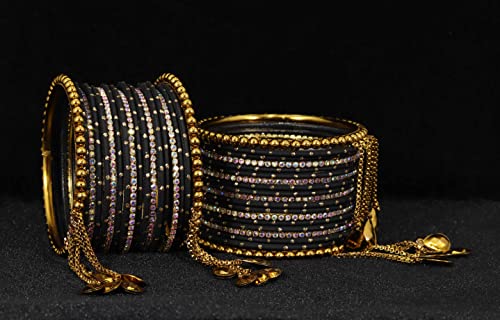 HomeFashionBanglesNMII Non-Precious Metal with Base Metal Zari Dotted and Rainbow Zircon Gemstone Studded Glossy Finished Kaleere Type Latkan Bangle set for Women and Girls 2.6 Metal Zircon Gemstone