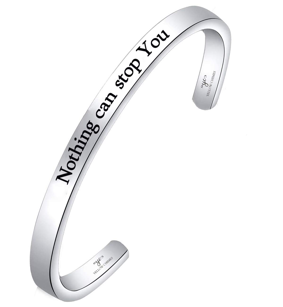 Nothing Can Stop You (Unisex) Inspirational Gifts Message Engraved Karma Band Bracelet Bangle Mirror Polish Stainless Steel for Women & Men