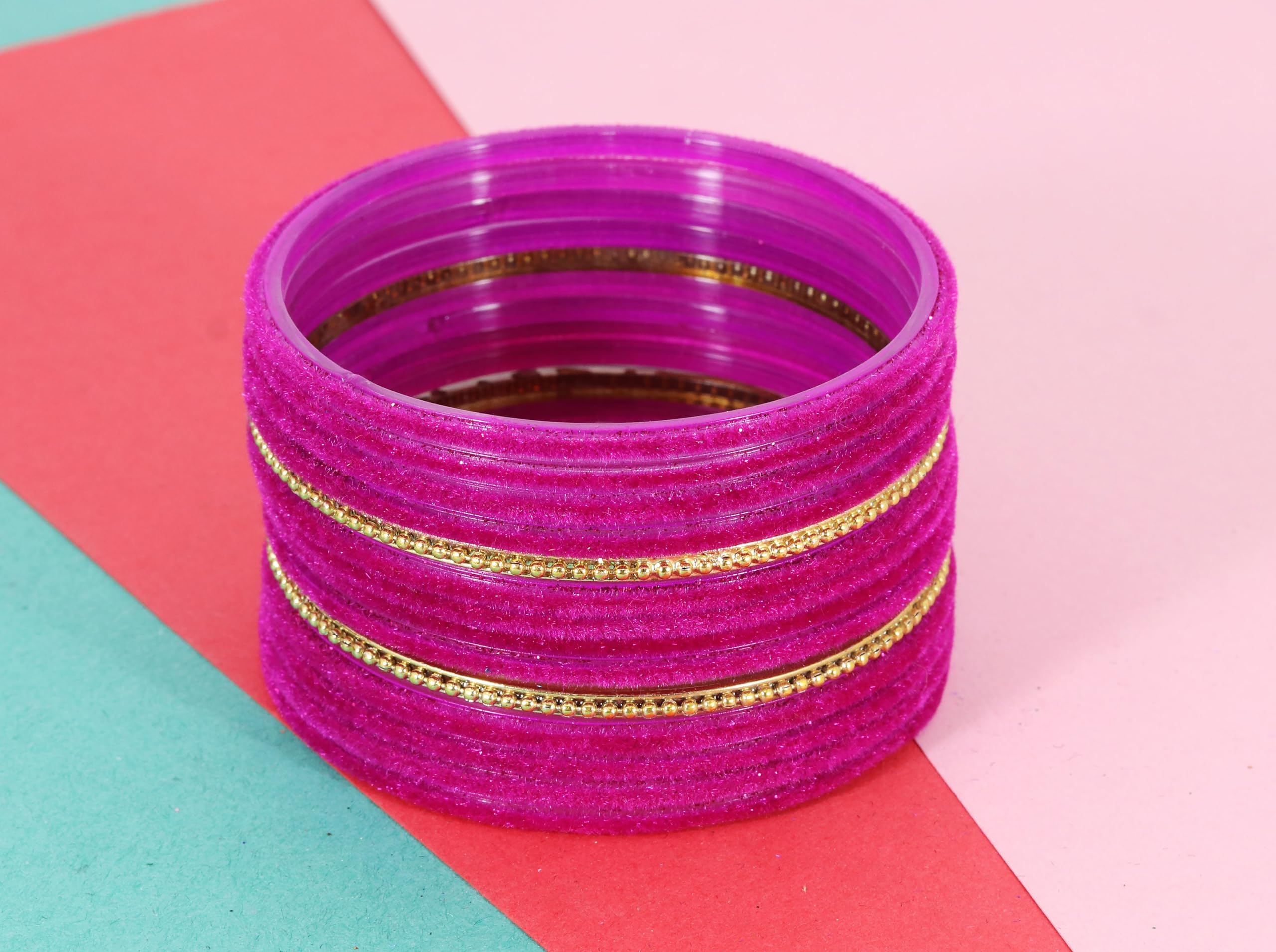 ZULKA Features Glass Velvet Bangles Set For Women and Girls with Golden Ballchain linked. This Designer Stylish Glass Bangle Set will Enhance The Beauty of your hands. These bangles are part of ZULKA's latest collection and are Made of Good good-quality glass and velvet Material. These Plain Glass Bangles Have a Premium and Velvet Finish and are Perfect for Festivals Parties Weddings Engagements and Daily. Welcome to Our Brand the world of all types of glass bangles Metal bangles Acrylic Bangles Chuda Sets Bridal Chuda sets Kaleere sets Kadaa sets and other Women's Jewelry Accessories. Choose from us a variety of bangles such as Glass Metal Silk thread Acrylic (plastic) Zircon Bead-worked Kundan-worked Lac material Electric Light Chudaa and more Available on Amazon. Please refer to our Size Chart to determine your Wrist size Accurately. CLEANING INSTRUCTIONS: To clean the bangles use a smooth cotton cloth. To ensure their longevity. Keep the bangles away from Direct water Perfume Deodorant Sunlight and other Chemicals and store them in an airtight zip-lock pouch. Thank you for choosing and buying our Products. If you find any problems Please refer to our product description For Sizes and Care Instructions. We have been selling products on Amazon since 2016.
