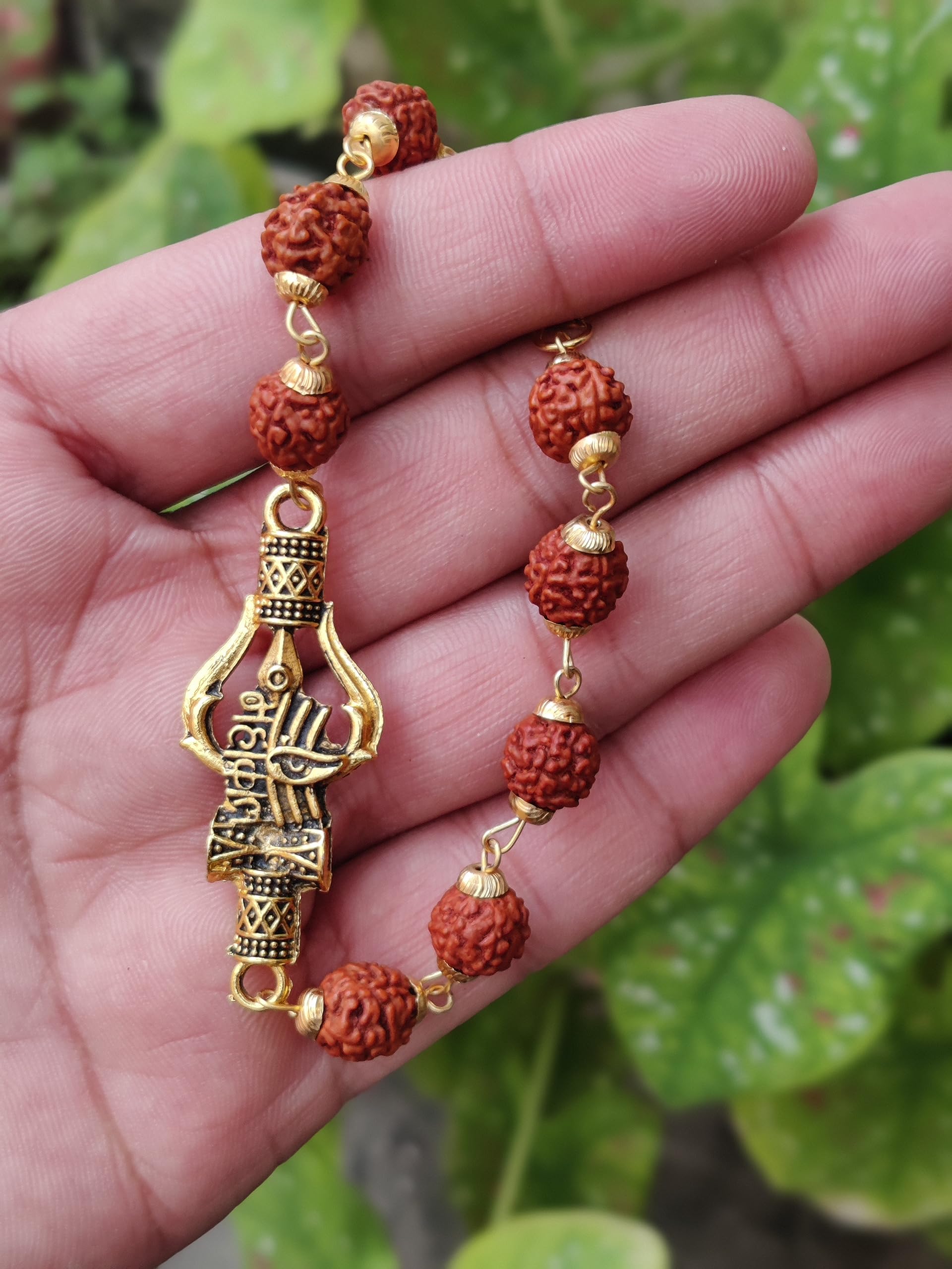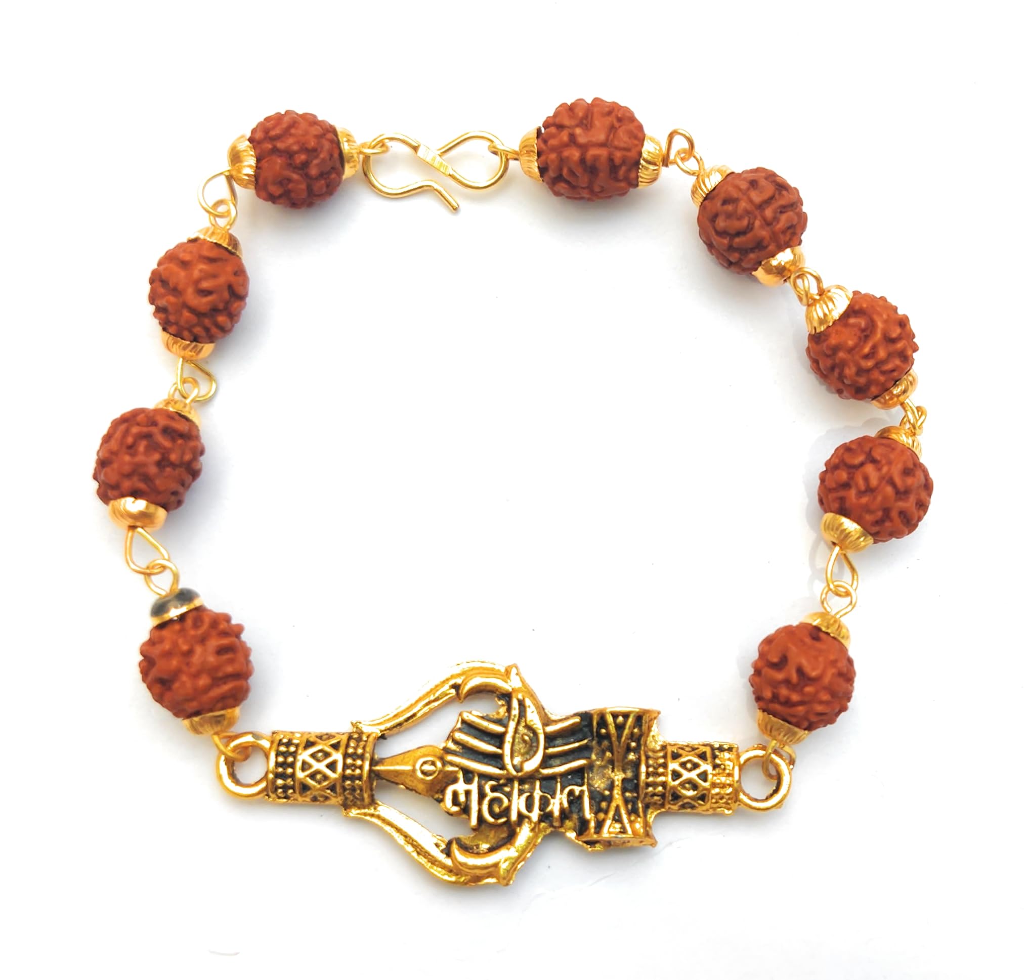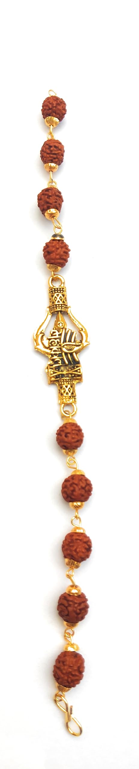 Apnisanskriti Premium Rudrakasha Rakhi Bracelet with Golden Cap Mahakal with Trishul Damru Trinetra for Men and Women (Free Size AAA Quality)