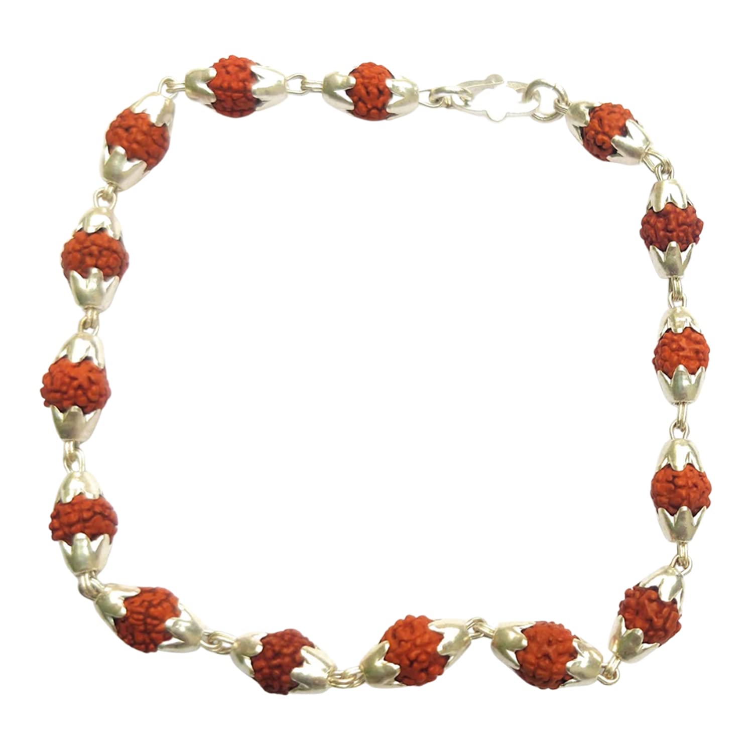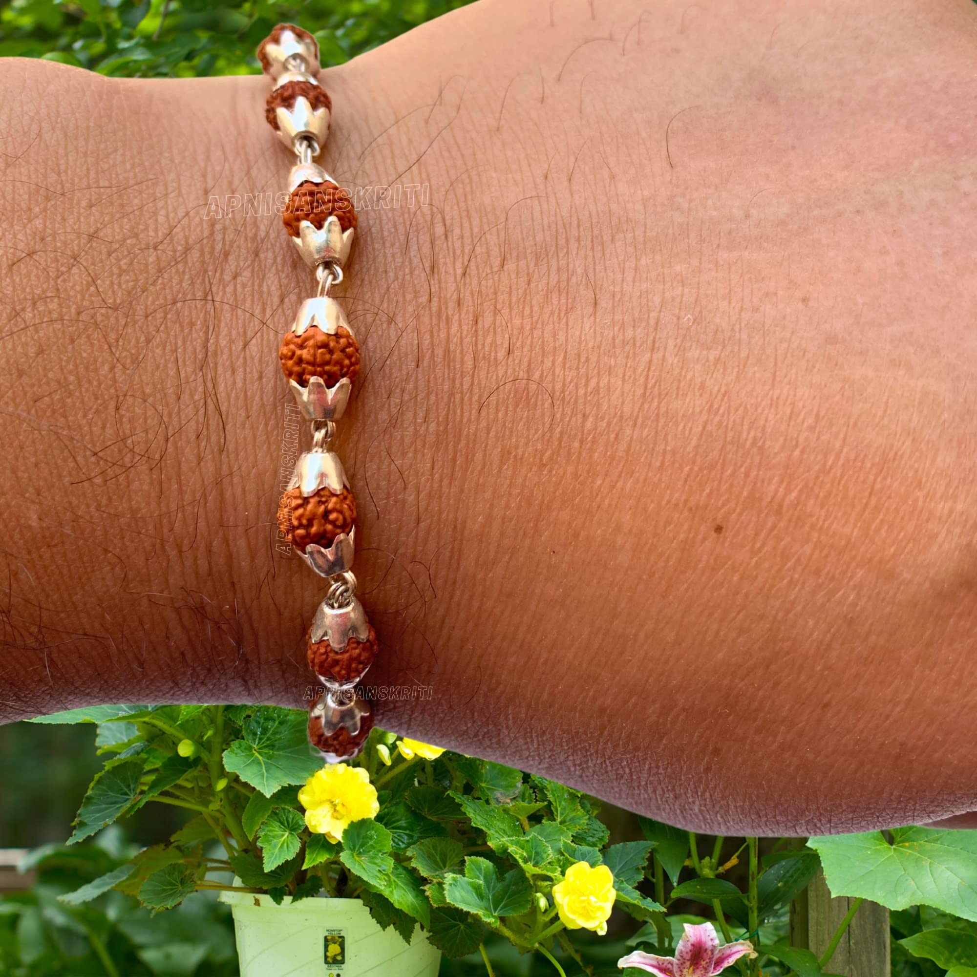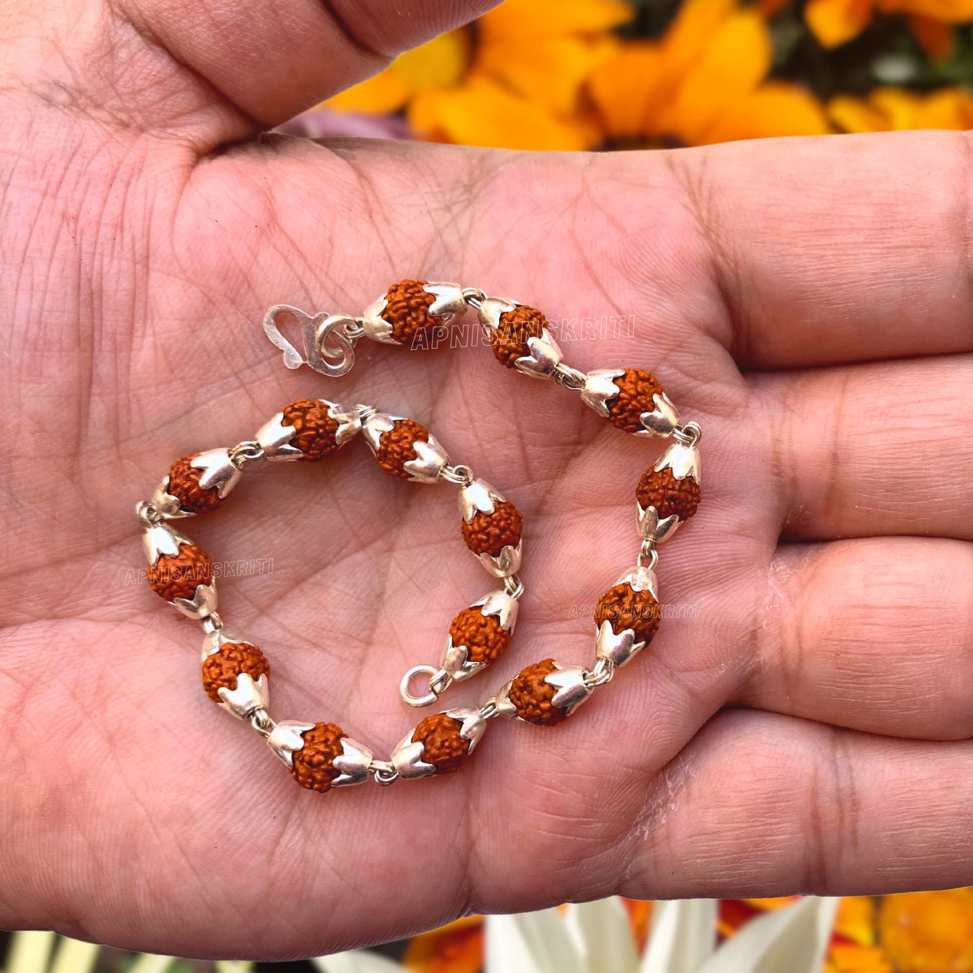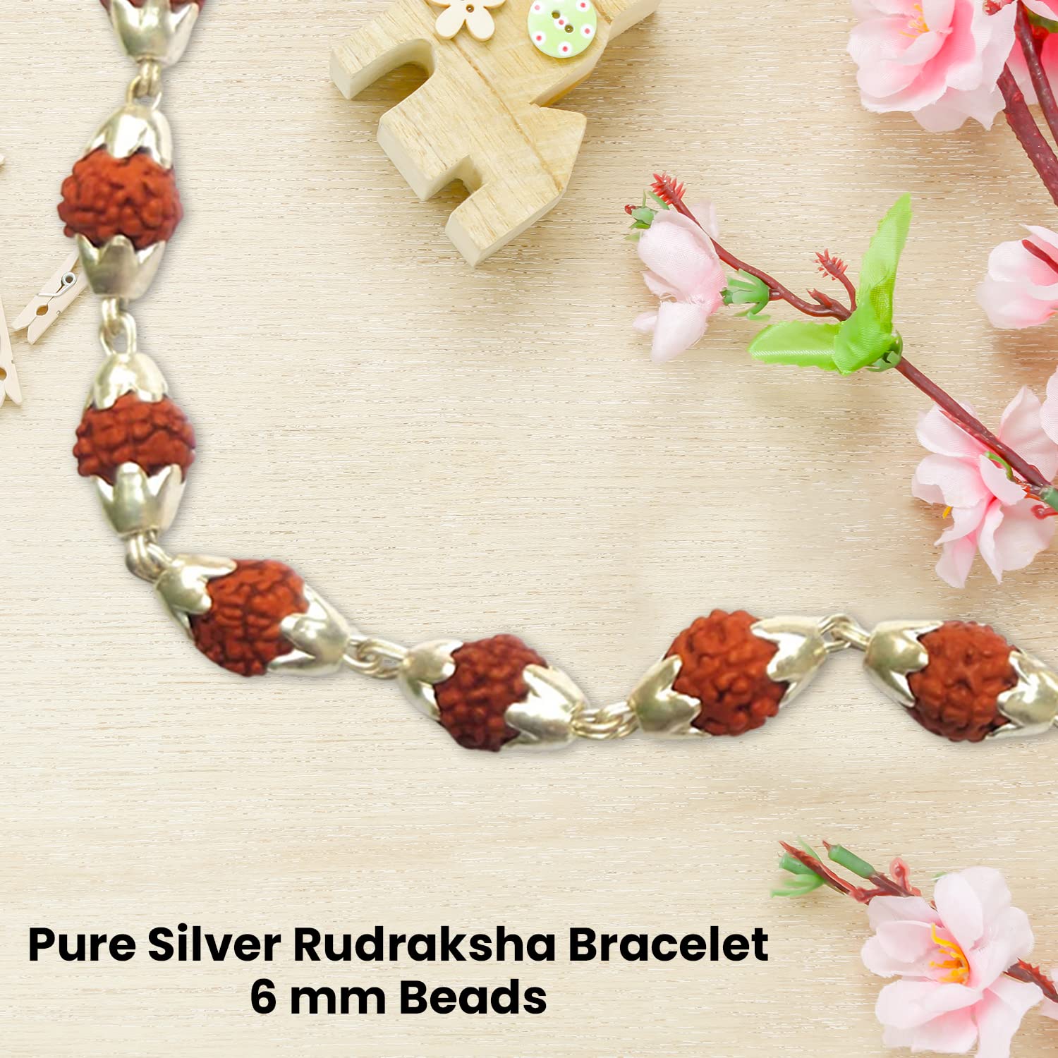 Apnisanskriti Pure Silver Rudraksha Bracelet Special Edition (6 mm Beads Free Size Lab Certified) - Natural Rudraksha Beads - Pack of 1