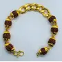 HomeFashionBraceletApnisanskriti Rudraksha Designer Bracelet with Chain for Boys (6 mm Beads Small Size Golden Caps Lab Certified) - Natural Rudraksh Beads - Pack of 1