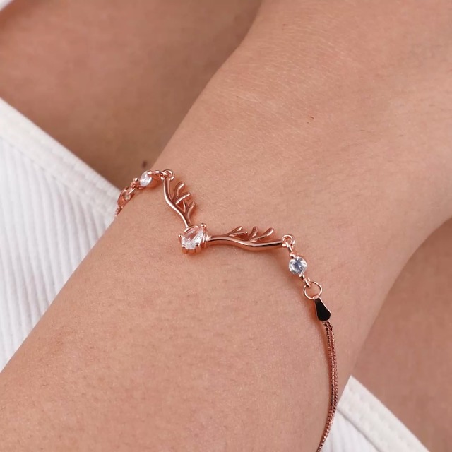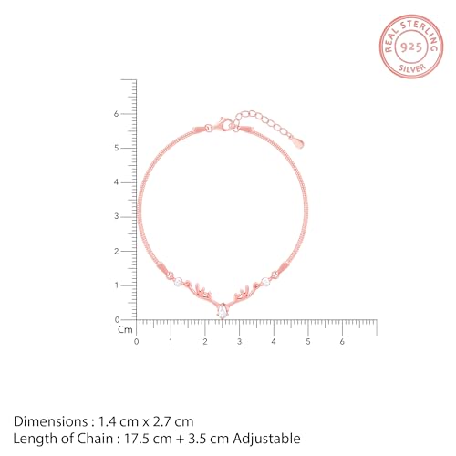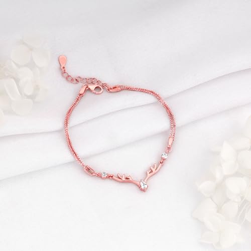 GIVA Women's 925 Sterling Silver Anushka Sharma Cubic Zirconia Rose Gold Deer Heart Bracelet, Adjustable Gifts With Certificate of Authenticity and 925 Hallmark