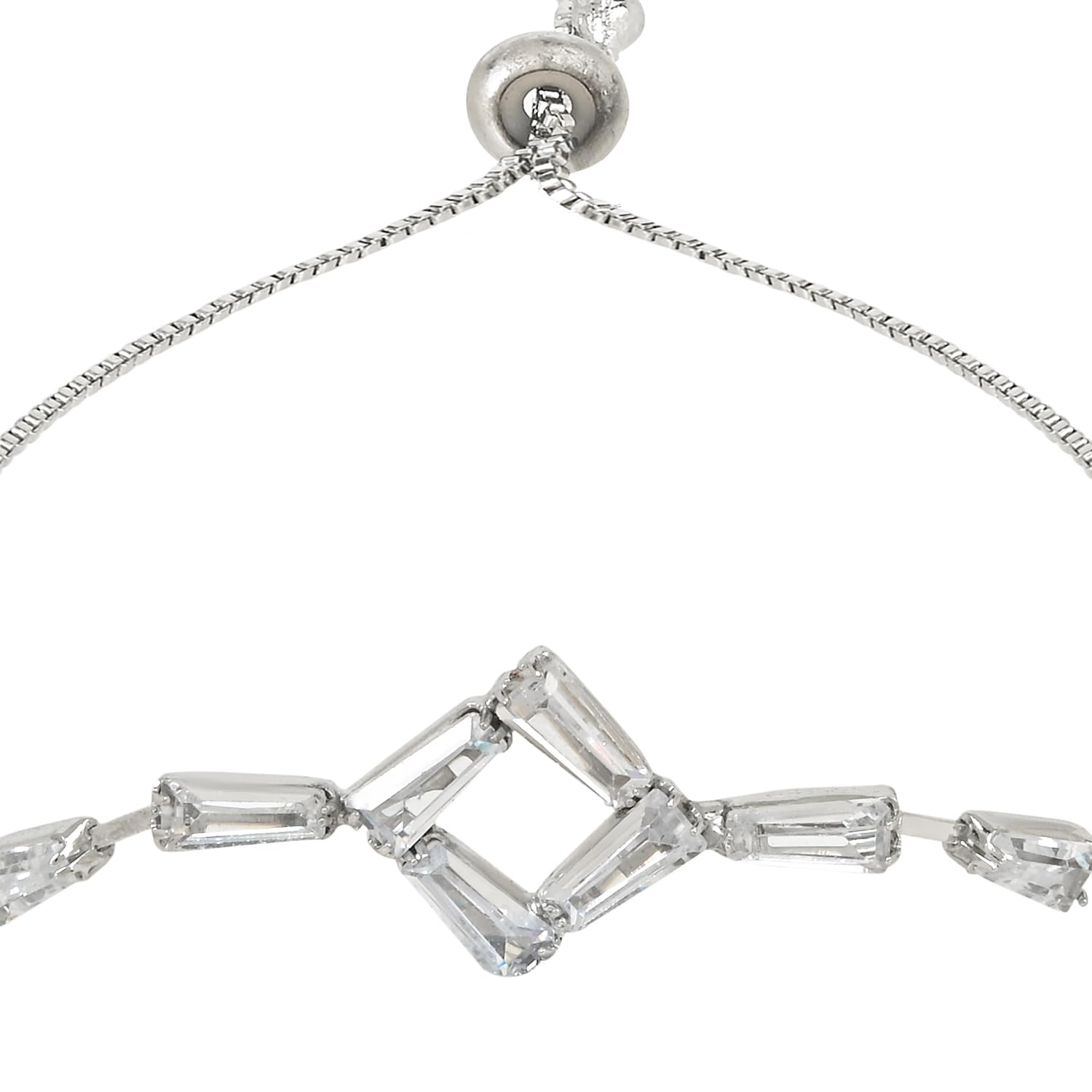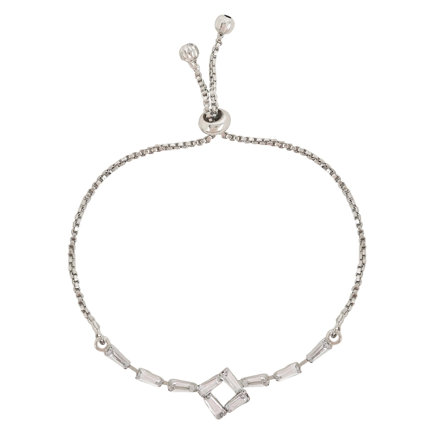 This bracelet embodies the perfect fusion of style and sophistication featuring a striking combination of silver plating cubic zirconia and American diamonds. The lustrous silver plating exudes a sense of understated glamour while the meticulously placed cubic zirconia and American diamonds create a dazzling display of sparkle and luxury.The adjustable design ensures a comfortable fit for women and girls of all wrist sizes making it a versatile accessory for any occasion. Whether it's a formal affair a festive celebration or a casual outing this bracelet effortlessly enhances your style exuding an air of grace and refinement.Indulge yourself or delight a loved one with the enchanting I Jewels Adjustable Bracelet. Its radiant allure and timeless design make it a perfect gift for birthdays anniversaries or any special milestone. Elevate your jewelry collection with this captivating piece that effortlessly combines classic elegance with contemporary flair allowing you to shine bright with every wear.