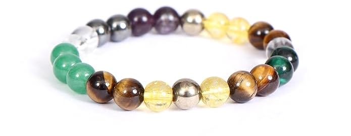 HomeFashionBraceletMoney Magnet Bracelet Pyrite Green Aventurine Citrine Hematite Clear Quartz Green Tiger Eye Amethyst Crystal Healing Natural Gemstone Bracelet For Men & Women Bead Size 8 Mm Multi Color