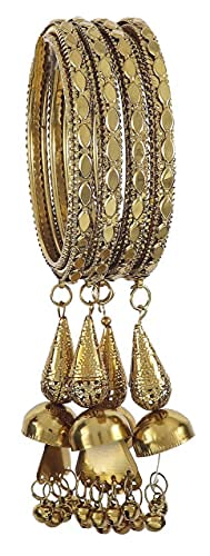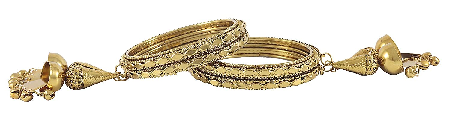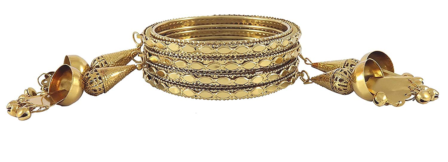 NMII Non-Precious Metal Base Metal with Leaf Shaped and Bracelet Bells Glossy Finished Latkan Kada Set For Women and Girls