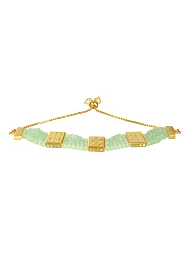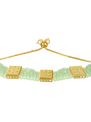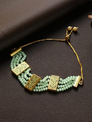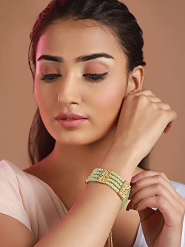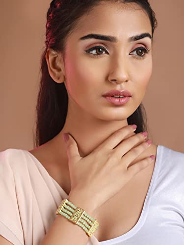 Priyaasi Green Leaf Meenakari Multilayer Gold-ColorBracelet