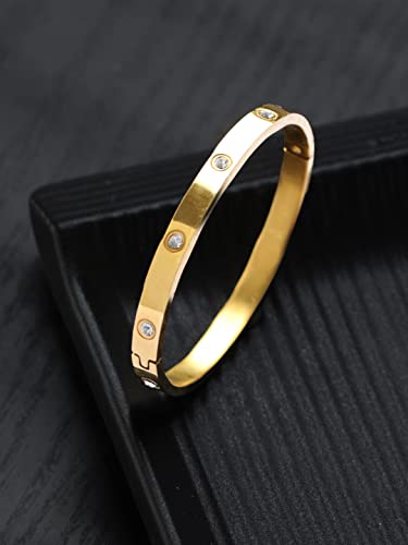 Priyaasi Minimal Solid Studded Gold-ColorBracelet