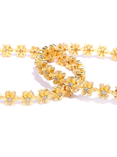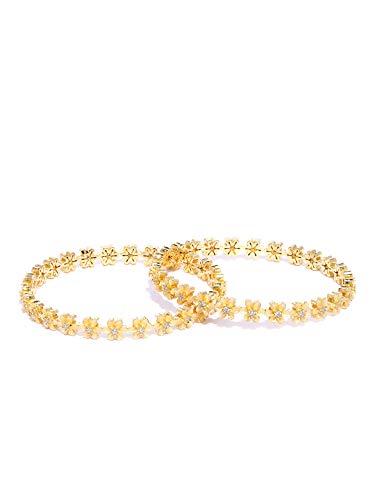 Priyaasi Set of 2 Gold-Plated Stones Studded Bangles in Floral Pattern