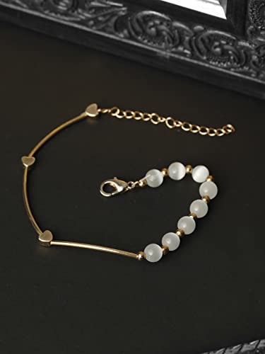 Priyaasi White Pearls Rose Golden ColorLink Bracelet