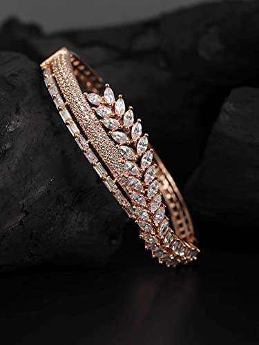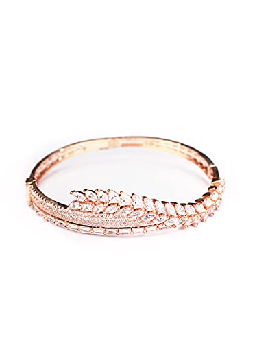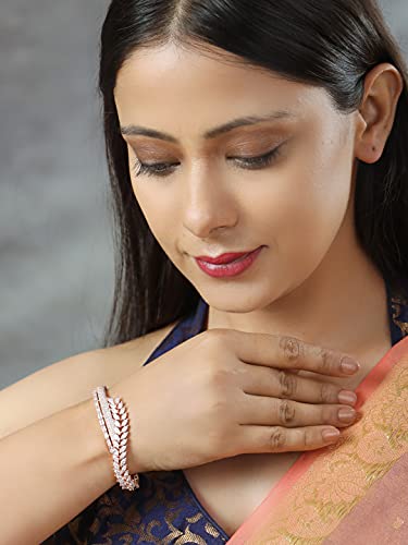 Priyaasi Women's American Diamond Plated Bracelet | Birthday Gifts | Leaf Shaped Bracelet, Best Gifts Adjustable Rose Gold